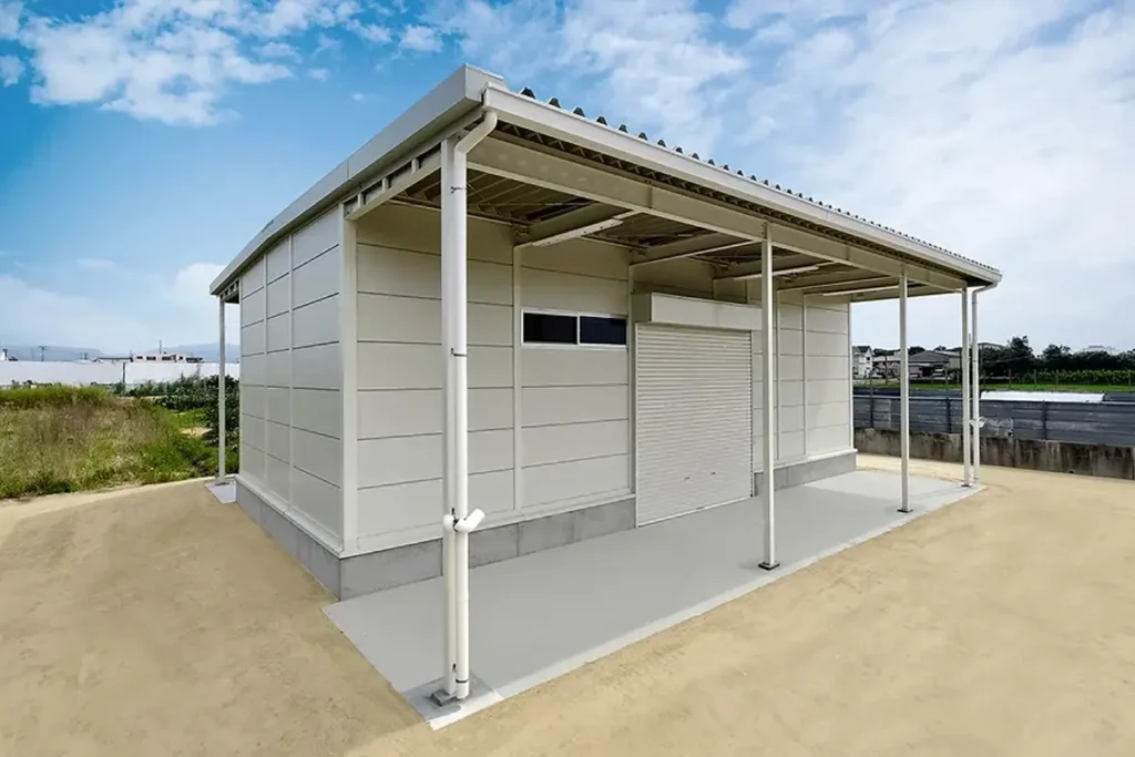 工場で箱(ユニット)として完成させ、現場では据え付けるだけのタイプ。短工期で移設も容易です。 -