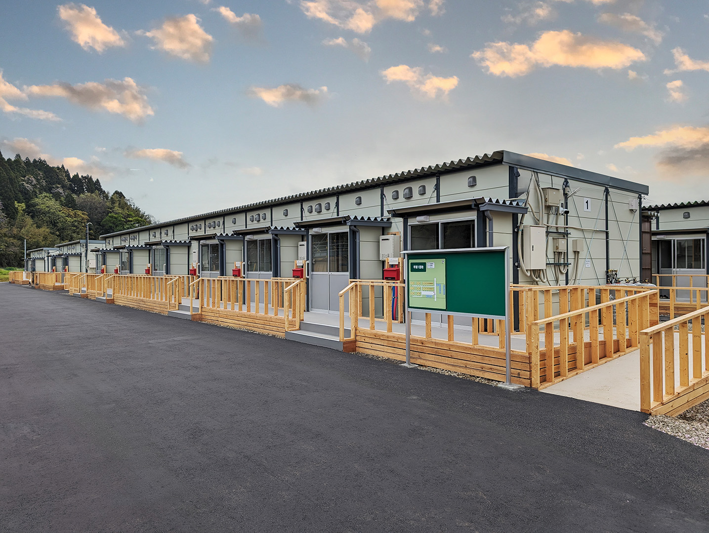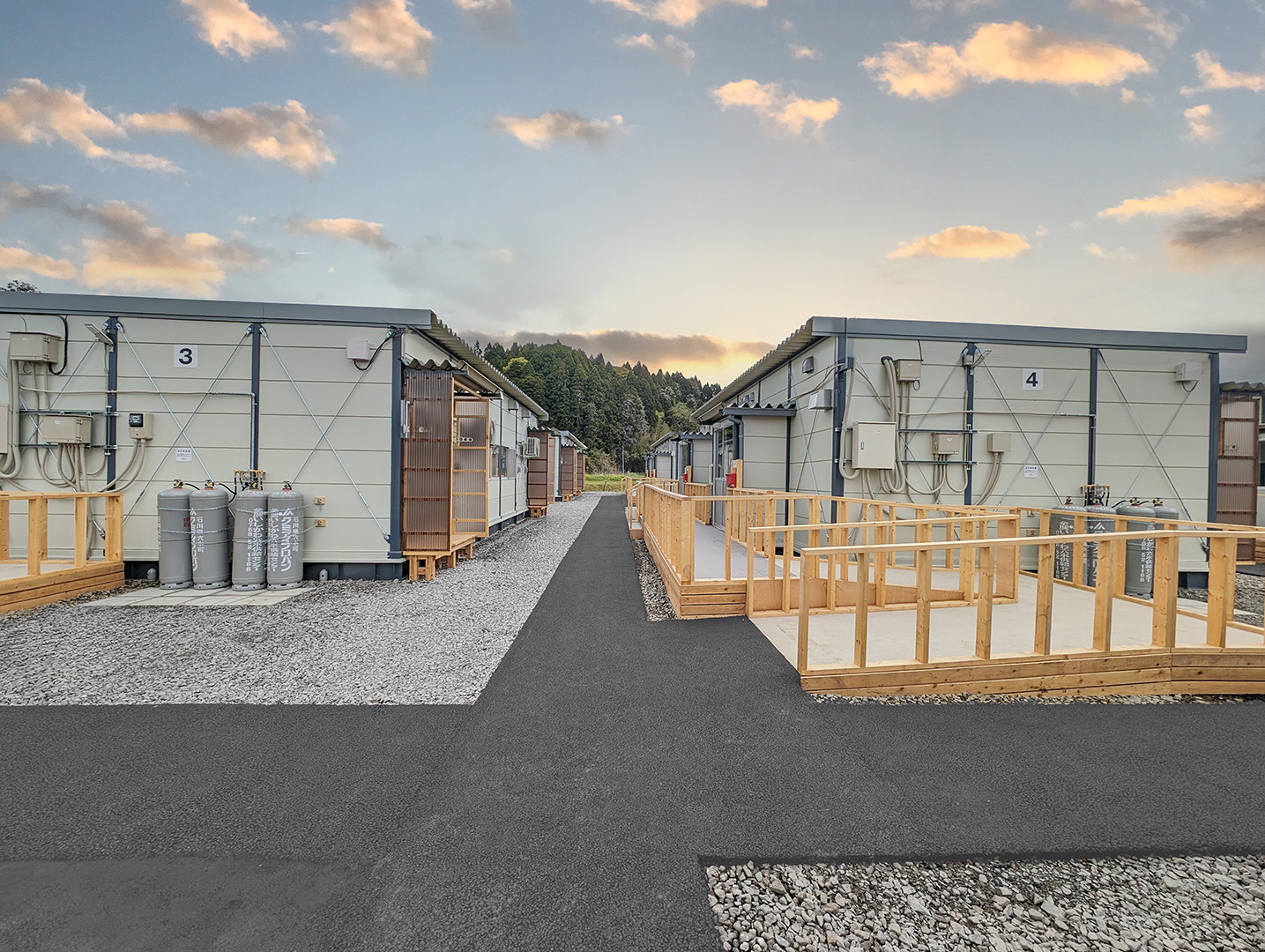 当社は、震災や大雨などの災害時における緊急仮設住宅の供給にも取り組んでおります。令和6年能登半島地震に際しては、被災地自治体の要請を受け、石川県内の複数地域で応急仮設住宅の施工を担当しました。住戸には断熱性能に優れた OLライトシリーズ 「OLライトシリーズ」 オリエントハウスプレハブシリーズの短工期&低コストの汎用モデル。外装・内装を兼ねることが出来る高断熱の壁パネルを使用しています。シリーズ詳細はこちら>more 外壁パネルを採用し、仮設ながらも快適に過ごせる居住空間を実現しています。被災された皆様が一日も早く安心して生活を再建できるよう、当社はこれからも復旧・復興への支援に全力で取り組んでまいります。