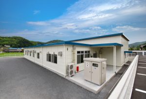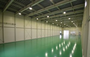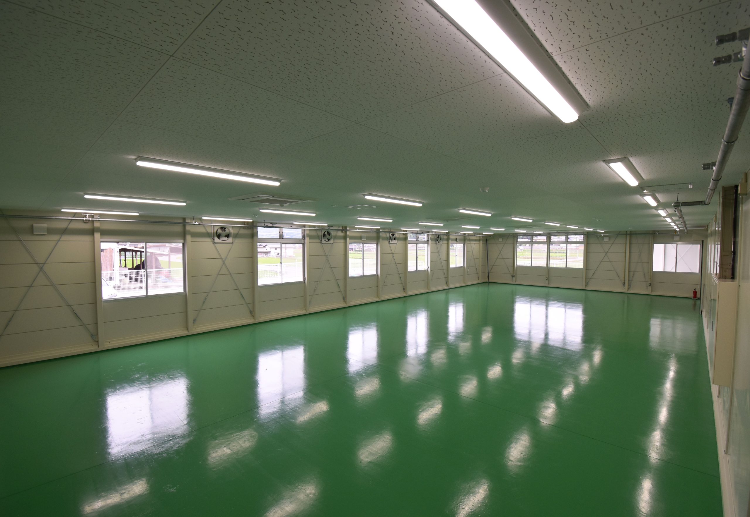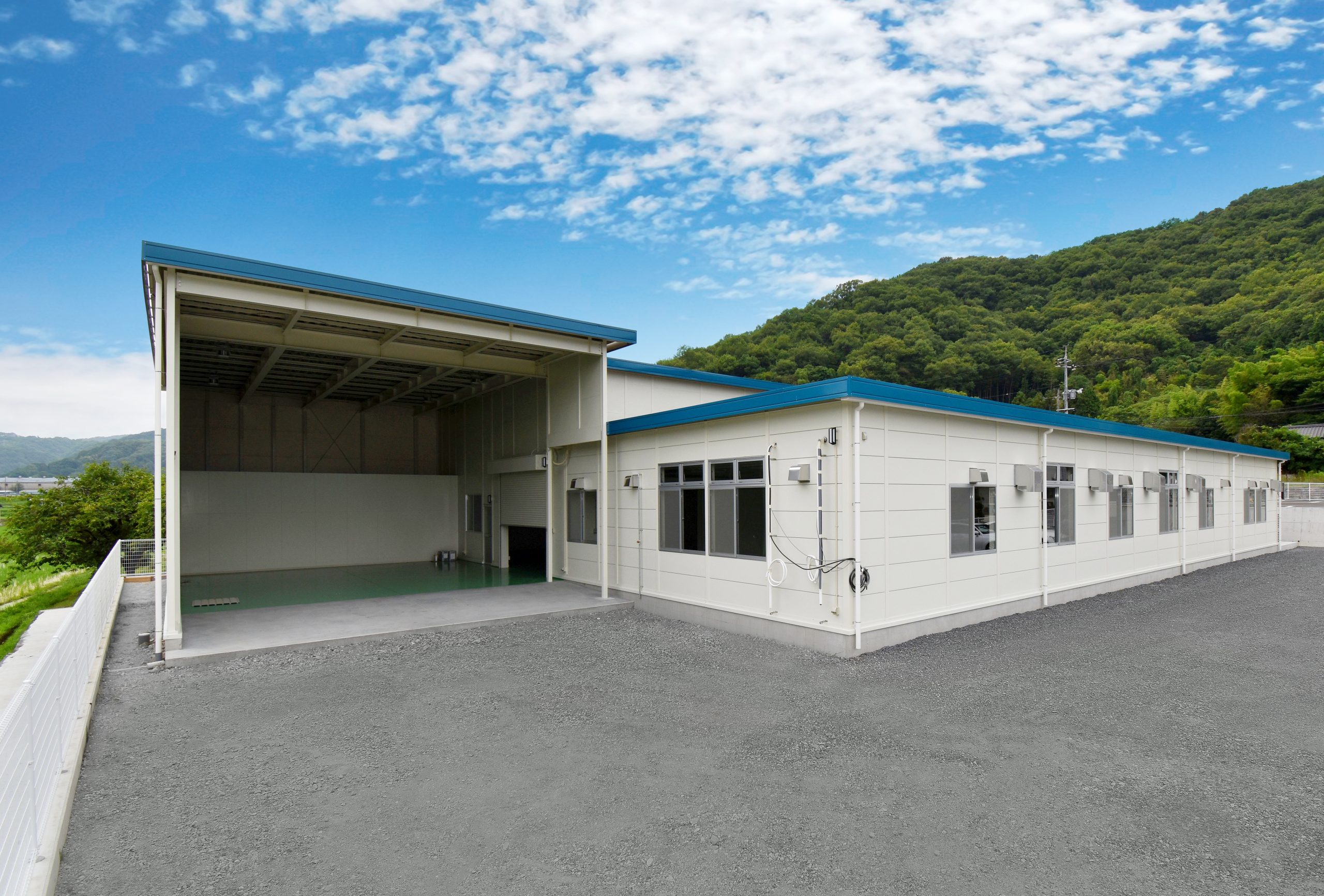 お客様の要望に応えるため、間柱と梁間を最大限に広く取りました。倉庫スペースが11m×38m、工場スペースが10m×38m、さらに積込スペースも確保しています。OLライトシリーズとOGロッジシリーズという、異なる製品タイプを複合することにより、コストも抑えています。