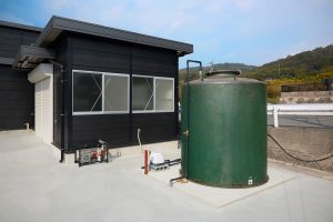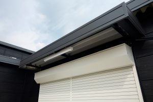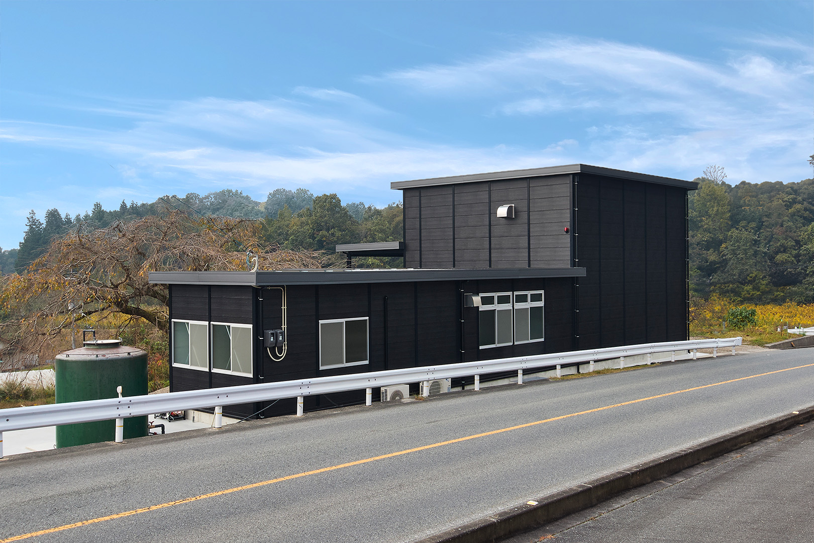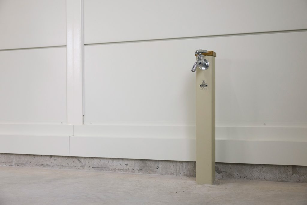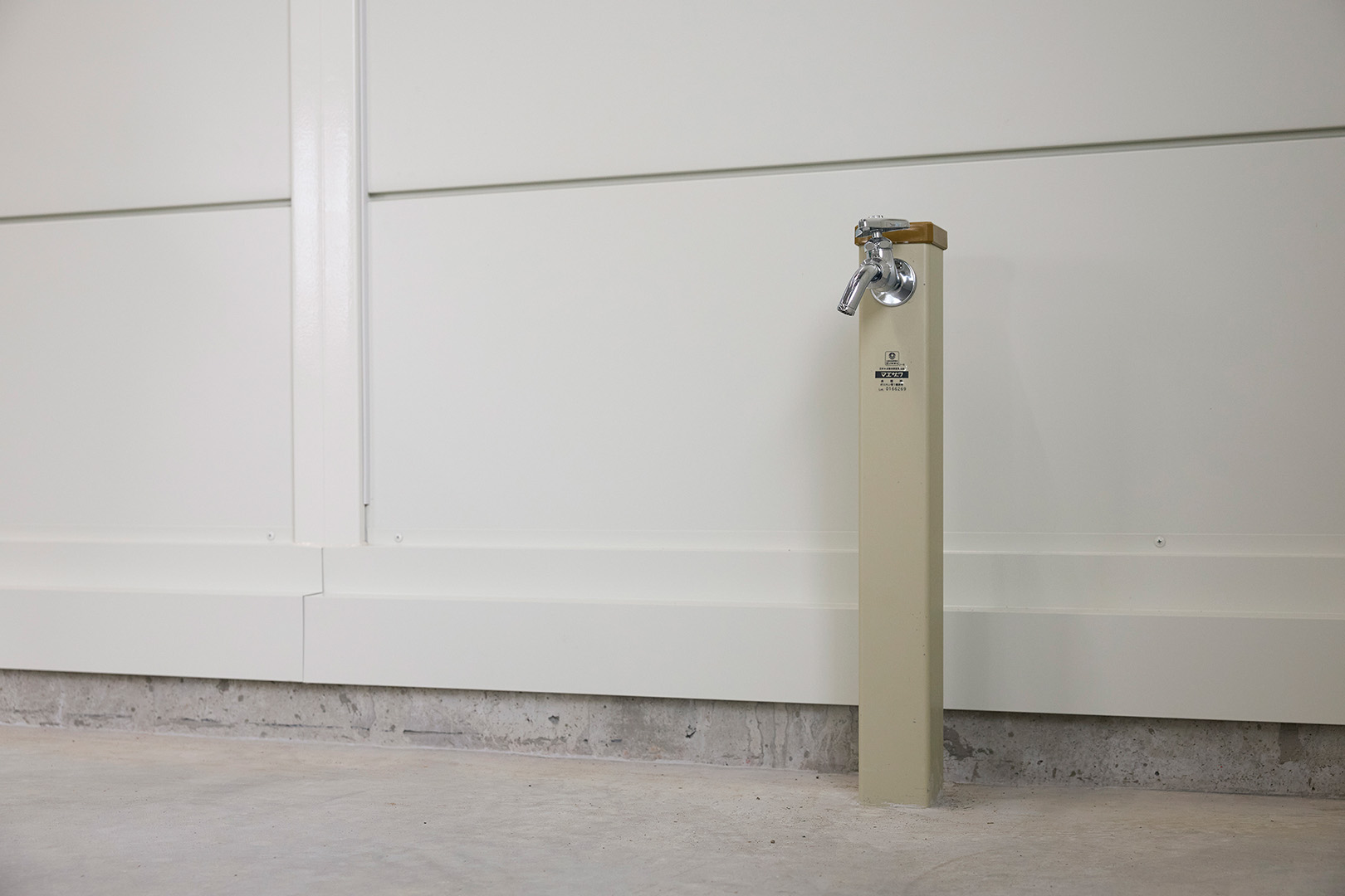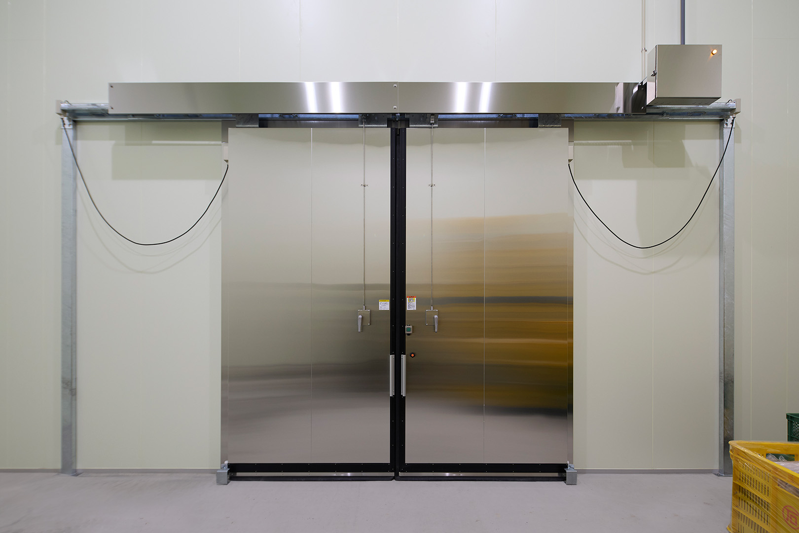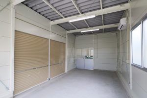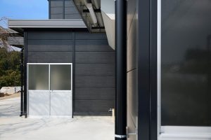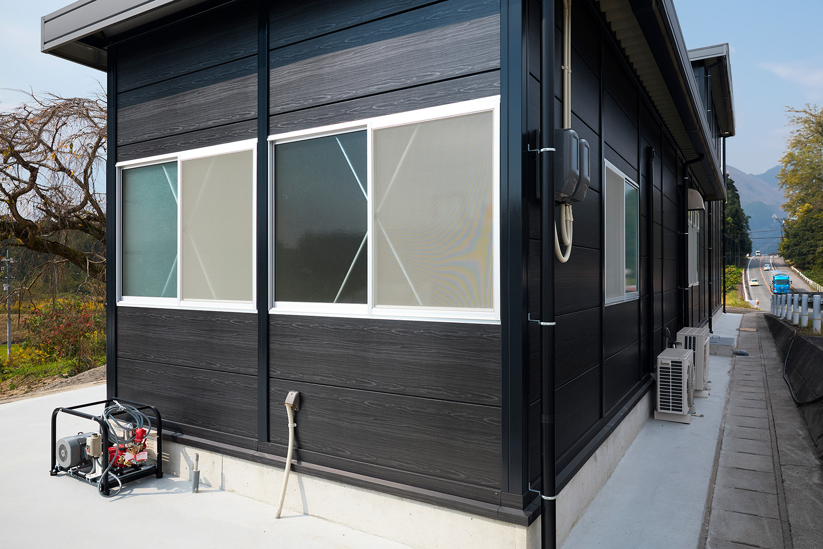 OLライトシリーズ 「OLライトシリーズ」 オリエントハウスプレハブシリーズの短工期&低コストの汎用モデル。外装・内装を兼ねることが出来る高断熱の壁パネルを使用しています。シリーズ詳細はこちら>more にて設計・施工した倉庫兼作業所です。不整形地の土地を最大限に有効活用するため、敷地の形状に合わせて建物の形状や配置を計画しました。建物内には天井高6.4m、面積約64㎡大型の冷蔵室を設置し、冷蔵室ドアの位置を幅3.5m×高さ2.3mの軽量大型シャッターとピッタリ合わせています。冷蔵室の隣は作業場、その隣には倉庫スペースを設け、フォークリフトやトラックで搬出入ができるよう各スペースに軽量シャッターを設けています。作業場・倉庫の天井高( 梁下 「梁下」 梁(はり)の下端から床仕上げ面までの高さを示す寸法。意匠的な天井仕上げの高さ(天井高)とは異なり、構造体としての制限寸法を表す。 梁下:梁の下端まで 天井高:内装仕上げ後の天井面ま...more 高)はコンテナ等が収納可能なように3mを確保しました。お客様は生姜を扱いになられ、広島県にて出荷量第一位とのことです。ご協力させていただき、ありがとうございました。
