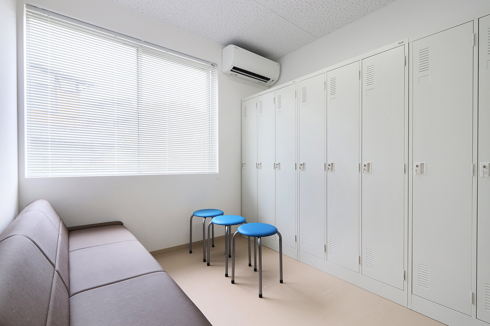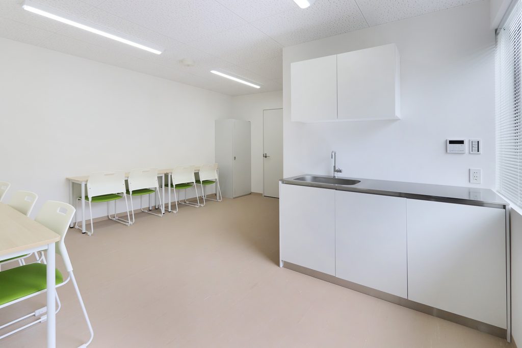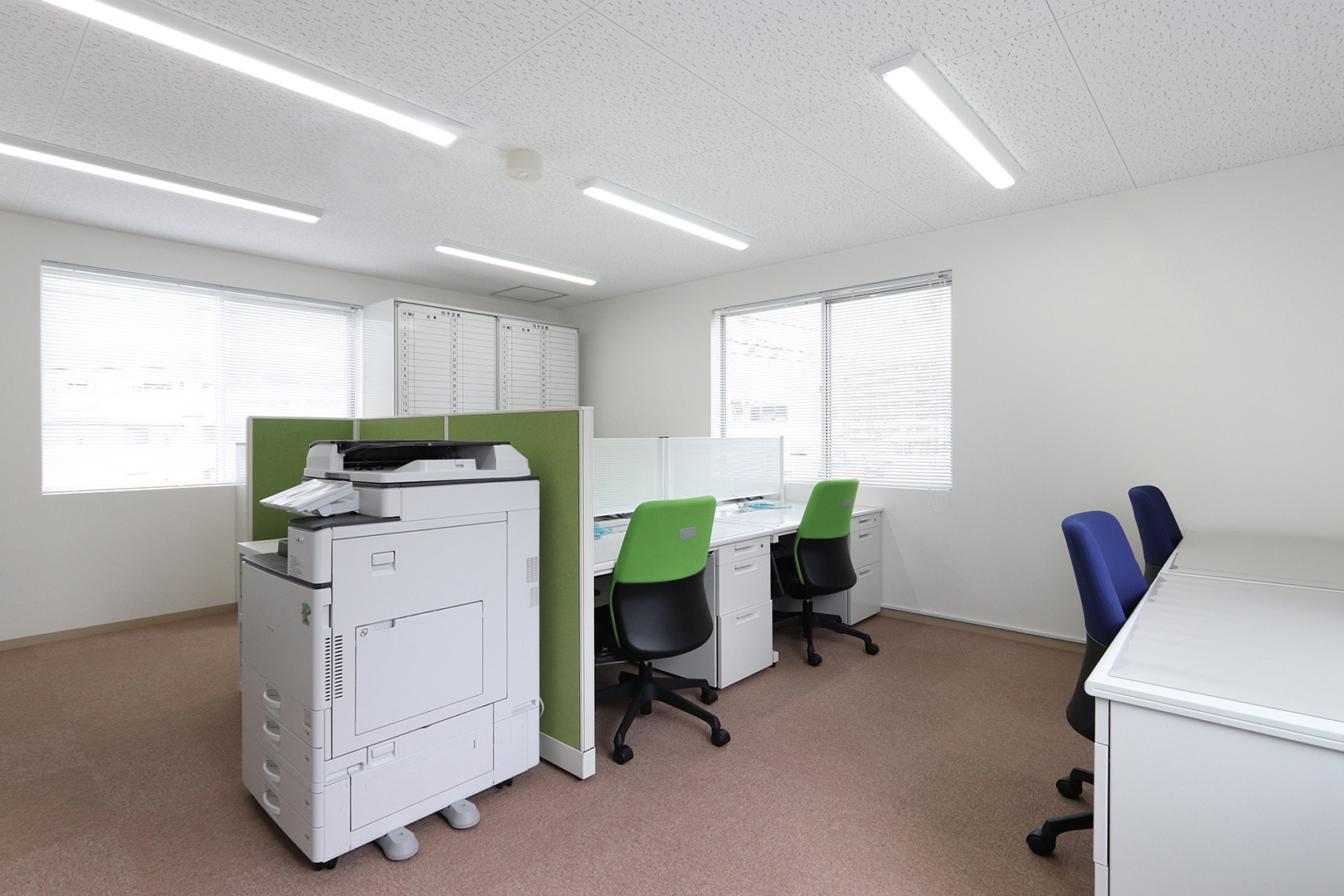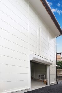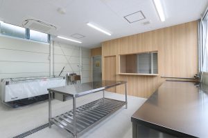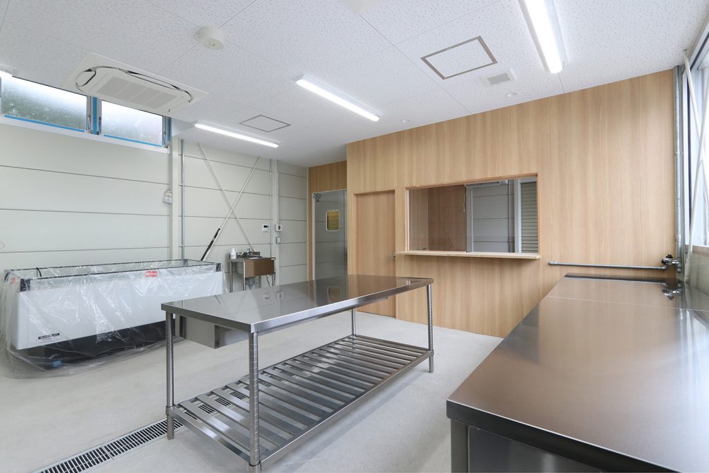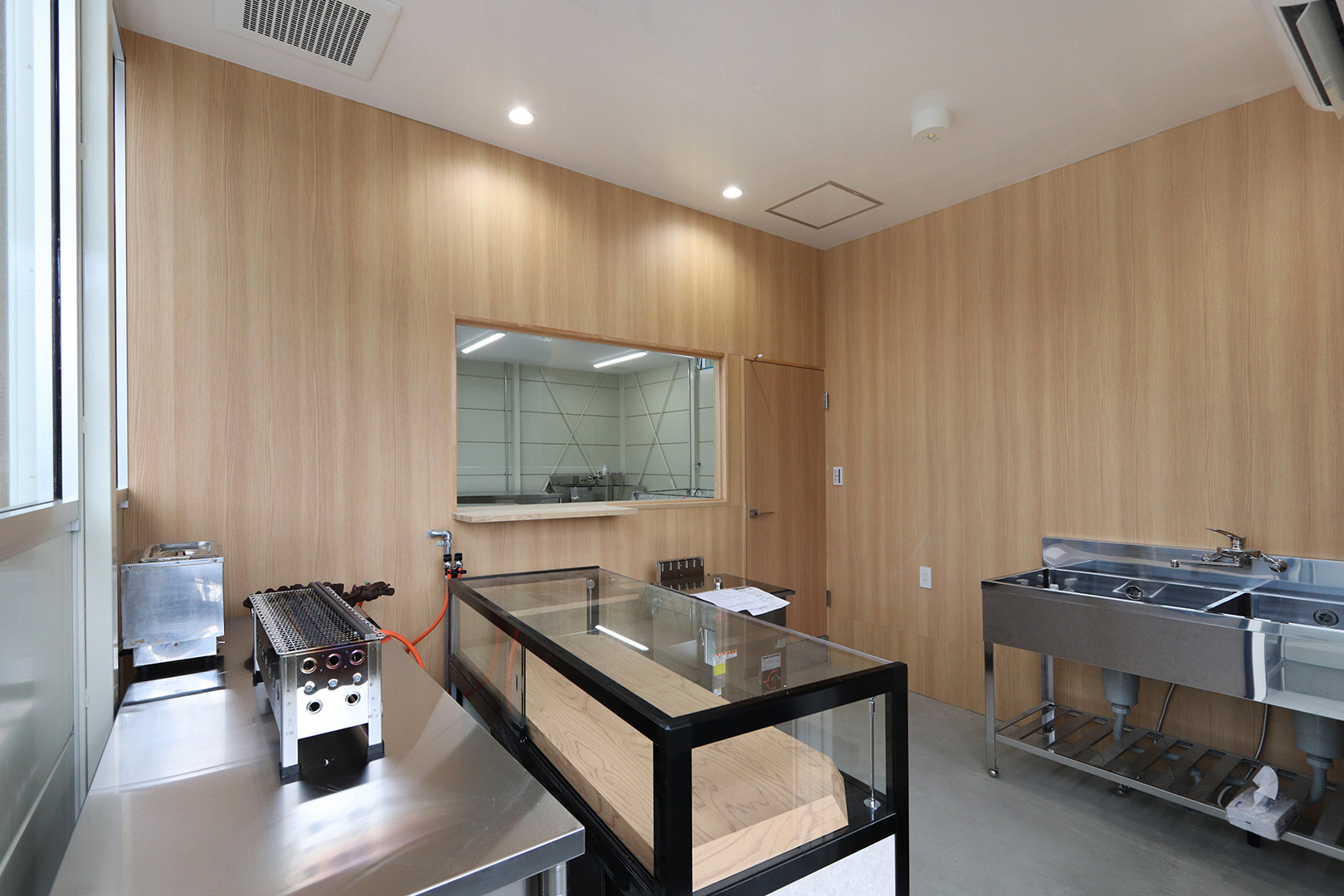 京都のだんご屋さんの、製造工場及び店舗になります。1階にて商品を製造し、各店舗へ発送されてますが、直売所という形でこちらでも販売されています。工場部分の床は毎日の清掃に最適なコンクリート仕上げ、業務用のキッチンテーブルや冷凍冷蔵庫などを設置。直売所部分は、大きめのガラスカウンターを設置し、実際にお客様がだんごを作る過程が見れるようになっています。また、店の前を通行される人にも、過程が見えるようにしたいとの要望があり、道路面には大型の FIX窓 「FIX窓」 開閉しない固定窓です。採光や眺望の確保に適しています。more を配置。2階には事務室や会議室があり、スタッフのための休憩室や更衣室も設けております。外観は地域の景観条例を考慮し、 切妻 「切妻」 切妻屋根とは、屋根の形状の一つで、棟を中心に左右二方向へ傾斜した、最も一般的な屋根形式。正面から見ると三角形の妻面が現れます。more 屋根となっています。昔ながらの和風建築のように、棟もいくつか設けて、デザインに配慮。