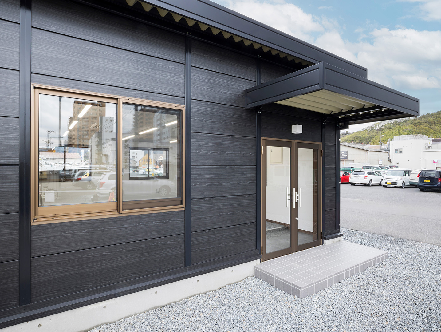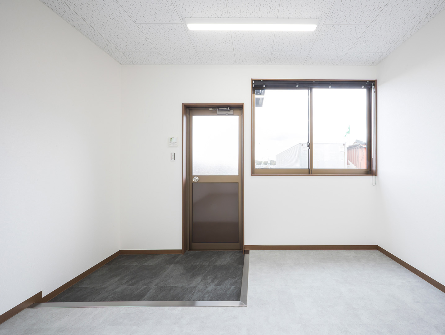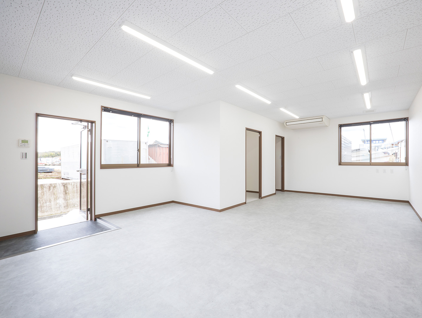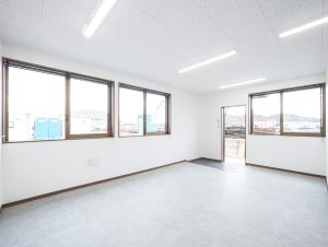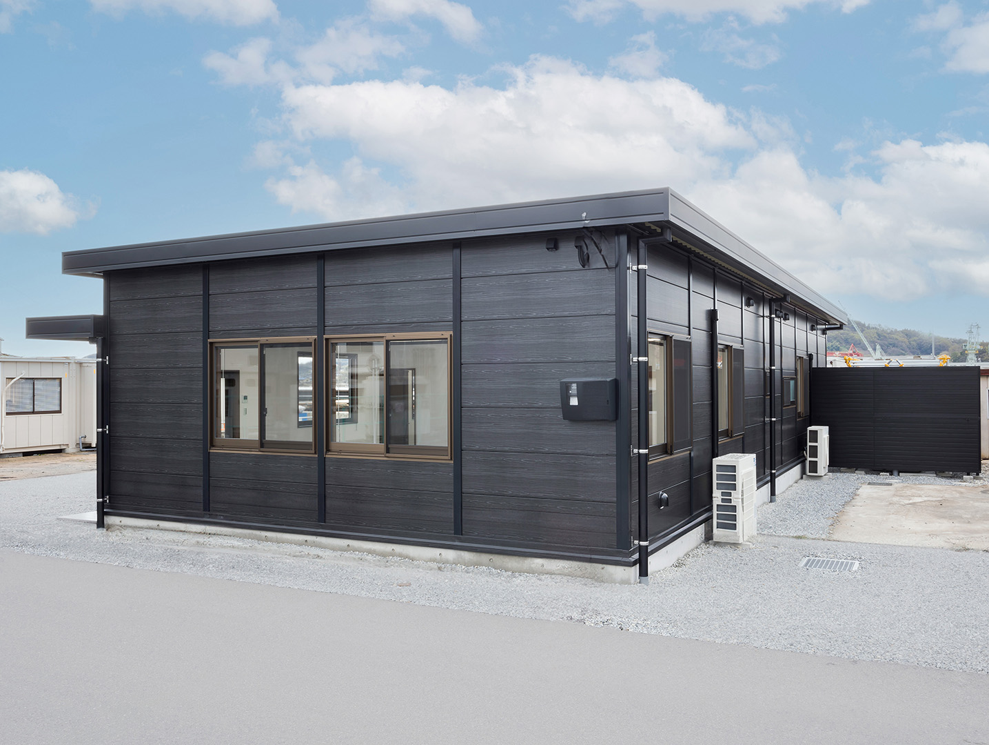 既存施設の老朽化を受け、事務所および社員休憩所として計画されました。施主様は、コストを抑えつつ限られた建築面積を活かして必要な諸室を配置し、断熱性や居住性を確保したいとのご希望でしたので、当社の「OLライトシリーズ」を採用しつつも、開口部にはビル用サッシと複層ガラスを用いて空調負荷を低減させる工夫を施しています。また、事務所スペースの床には OAフロア 「OAフロア」 事務所向けの二重床です。床下にLANや電源を収め、レイアウト変更にも柔軟に対応可能です。フリーアクセスフロアとも呼ばれます。more を採用し、煩雑な配線類を床下に収納することで、配置替えやメンテナンスの容易さを実現しつつ、整理されスッキリしたイメージに仕上がっています。さらに、社長室には高級感のある壁紙を使用し、品位のある空間を演出しました。これらの工夫により、限られたスペースでありながら快適で機能的なオフィス環境が実現されています。