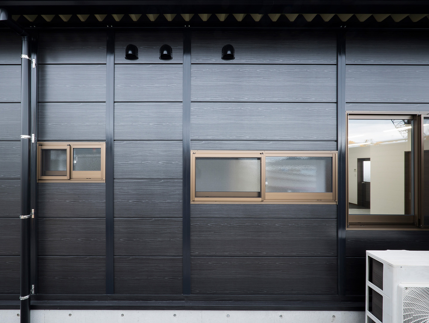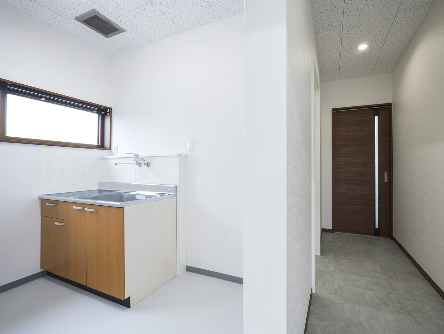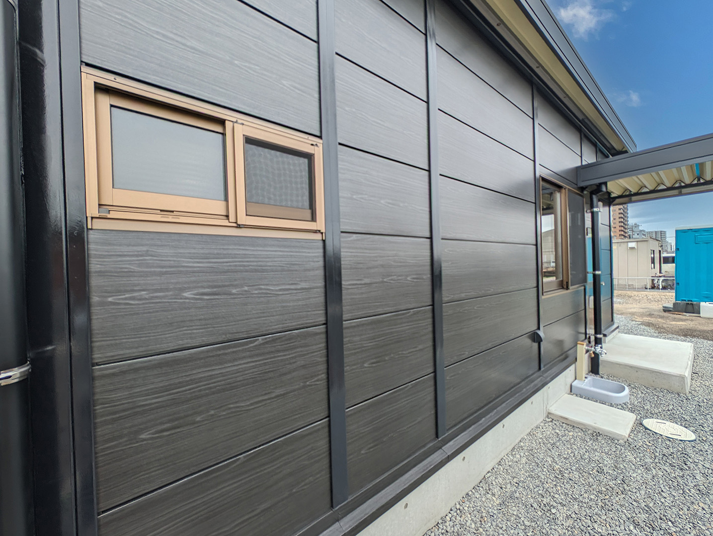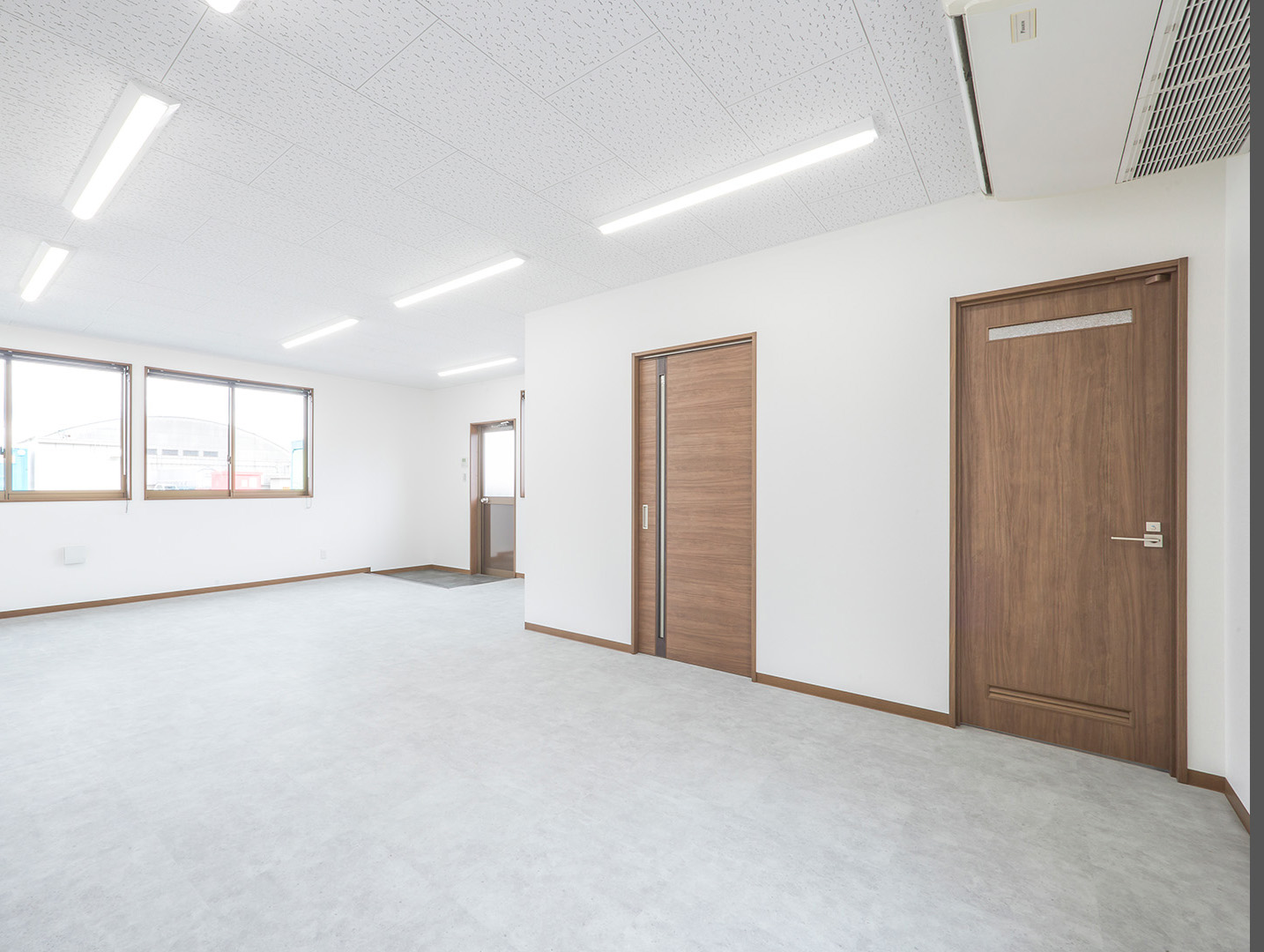 既存施設の老朽化を受け、事務所および社員休憩所として計画されました。施主様は、コストを抑えつつ限られた建築面積を活かして必要な諸室を配置し、断熱性や居住性を確保したいとのご希望でしたので、当社の「OLライトシリーズ」を採用しつつも、開口部にはビル用サッシと複層ガラスを用いて空調負荷を低減させる工夫を施しています。また、事務所スペースの床には OAフロア 「OAフロア」 事務所向けの二重床です。床下にLANや電源を収め、レイアウト変更にも柔軟に対応可能です。フリーアクセスフロアとも呼ばれます。more を採用し、煩雑な配線類を床下に収納することで、配置替えやメンテナンスの容易さを実現しつつ、整理されスッキリしたイメージに仕上がっています。さらに、社長室には高級感のある壁紙を使用し、品位のある空間を演出しました。これらの工夫により、限られたスペースでありながら快適で機能的なオフィス環境が実現されています。