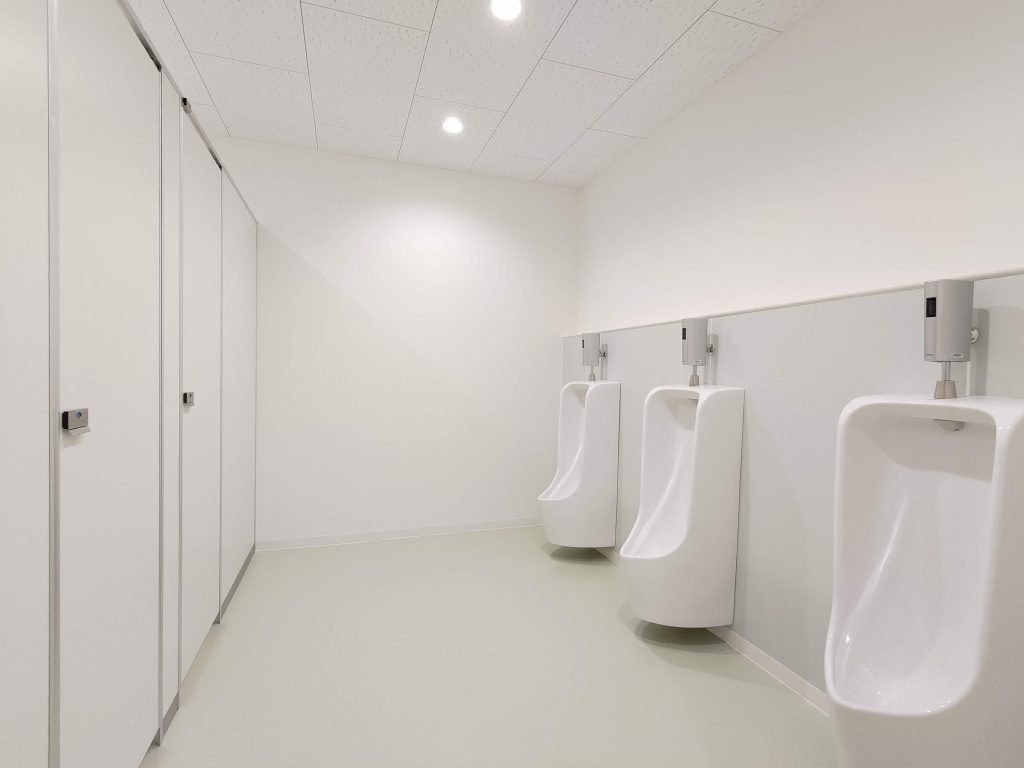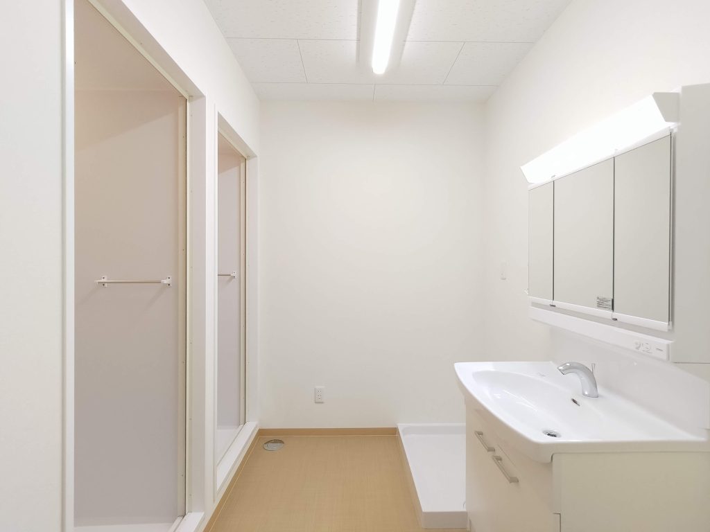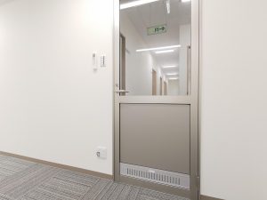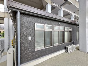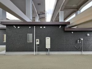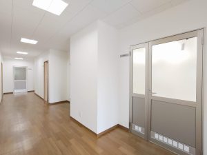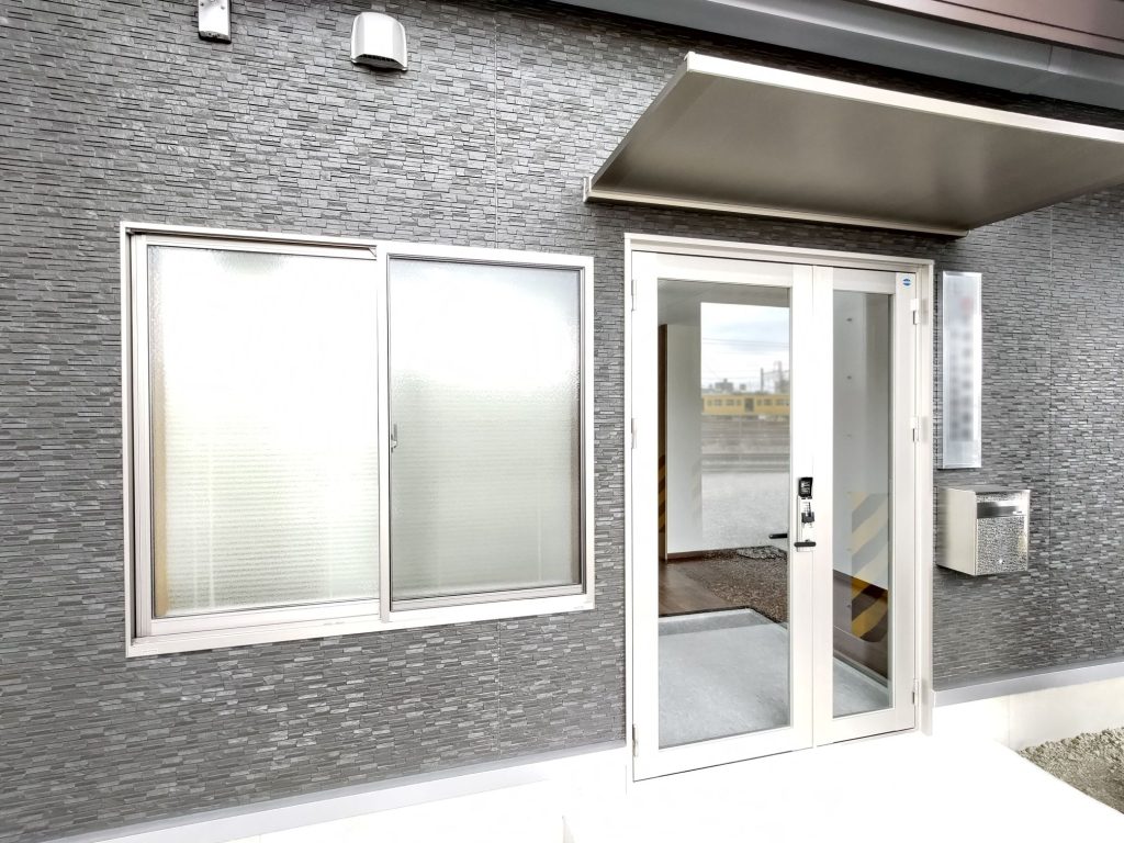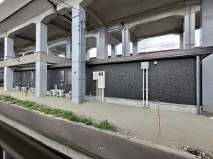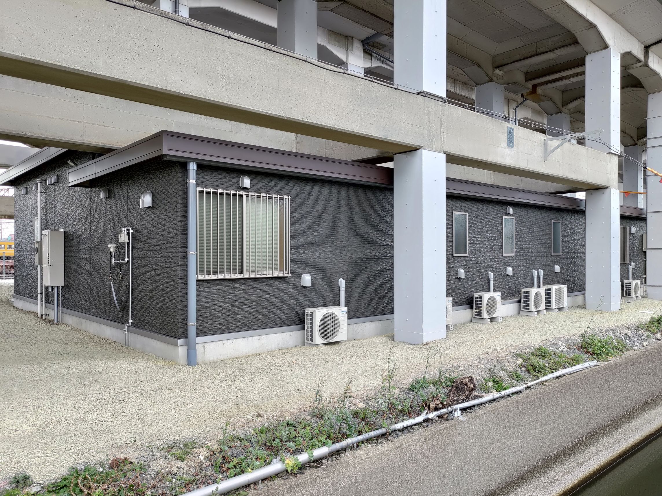 TDシリーズ 「TDシリーズ」 オリエントハウスプレハブシリーズのロングセラーシリーズです。設計の自由度が高くデザイン性の高い建築が可能で、準耐火建築物にも対応しています。シリーズ詳細はこちら>more にて設計した仮眠室併設の事務所になります。高架下の立地ということも有り、柱・梁・内部などの間取りはもちろん、施工の点においても様々な制限がありました。さらには電車の通過による振動や音の懸念といった要素もあり、細部の仕様を工夫しています。例えば、室内の内壁に関しては、壁紙クロスのひび割れ対策としてスリットを入れたり、また防音対策として、窓はすべて複層ガラスを採用。また、高架の干渉を考慮してプラン図を最適化しています。高架に干渉しない部分には会議室や事務所などを配置し、高めの天井高(2.7m)を確保。干渉する部分には、仮眠室や休憩室などを配置しました。また、外部から土足のままアクセスできるトイレも設置し、利便性にも配慮。外観に関しては、外壁には窯業系サイディングを採用し、玄関には大型のアルミ製透明ガラスドアとアルミ庇を採用することで、スタイリッシュに仕上げております。