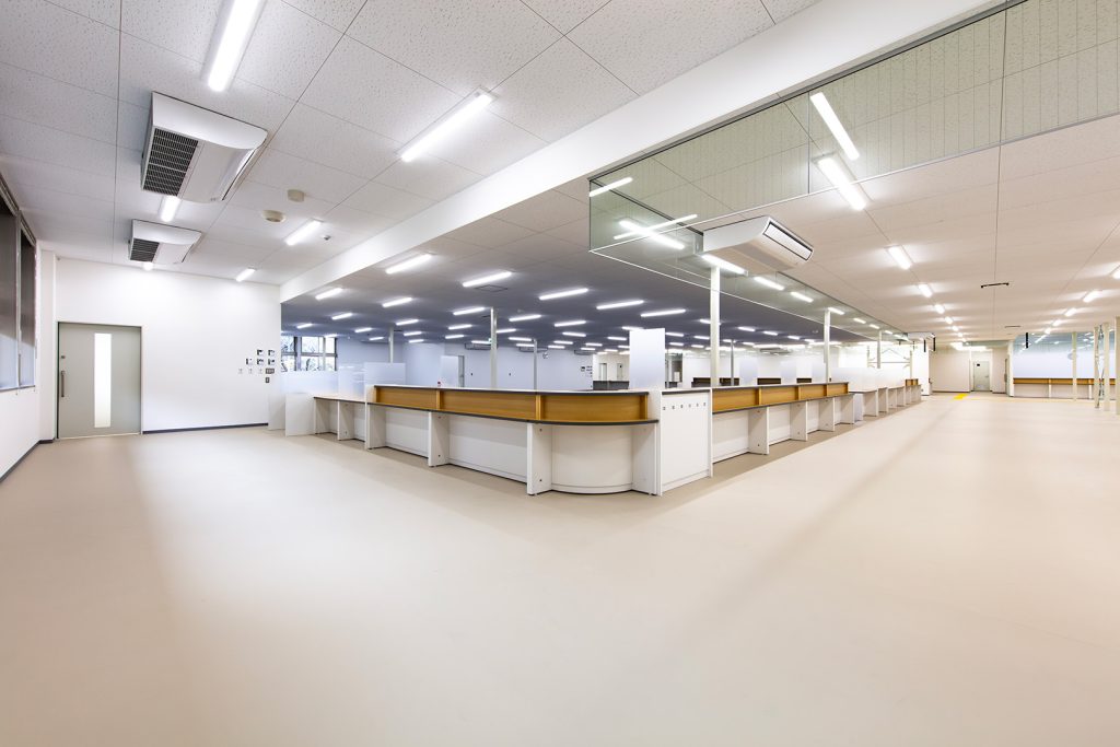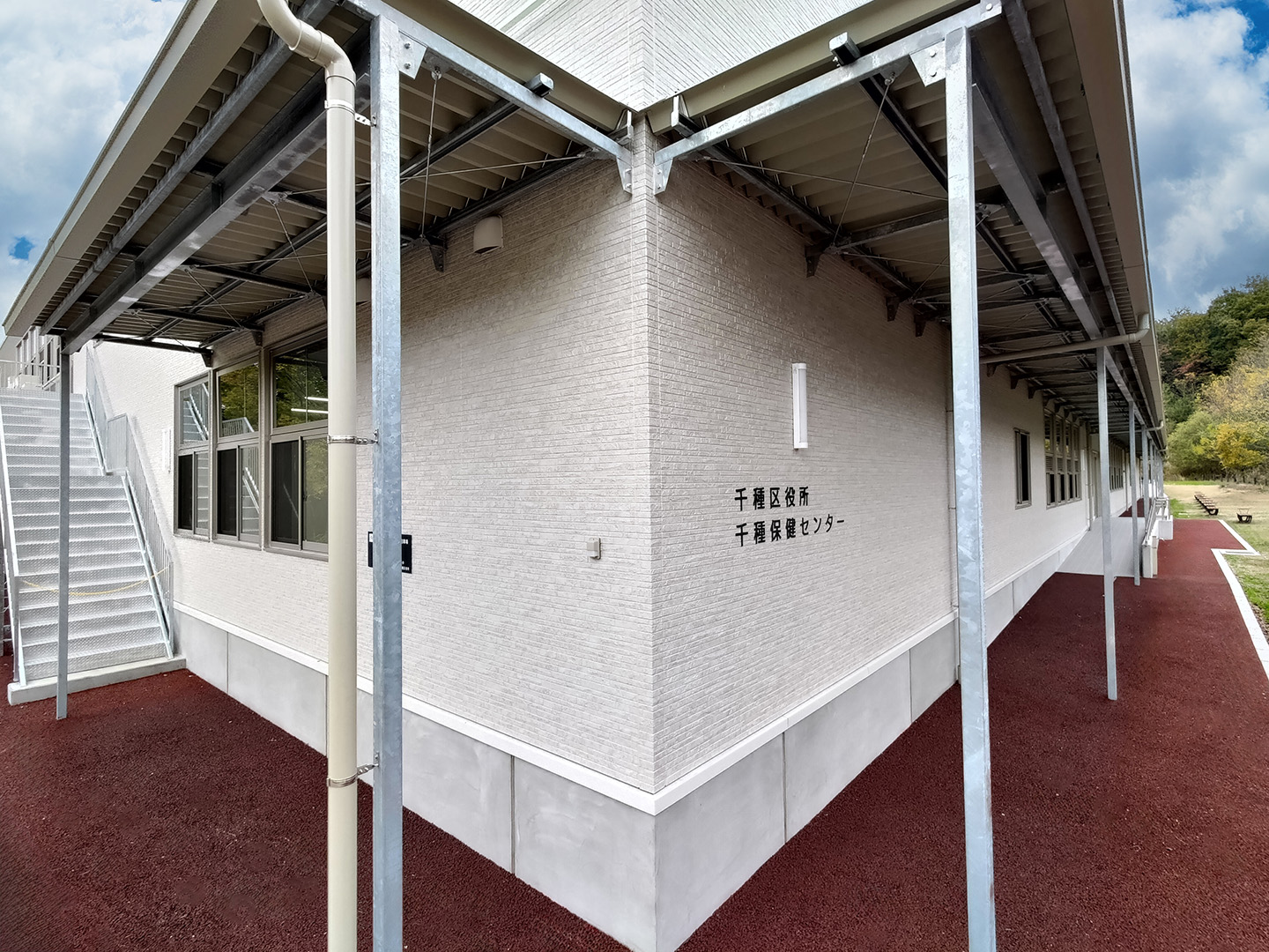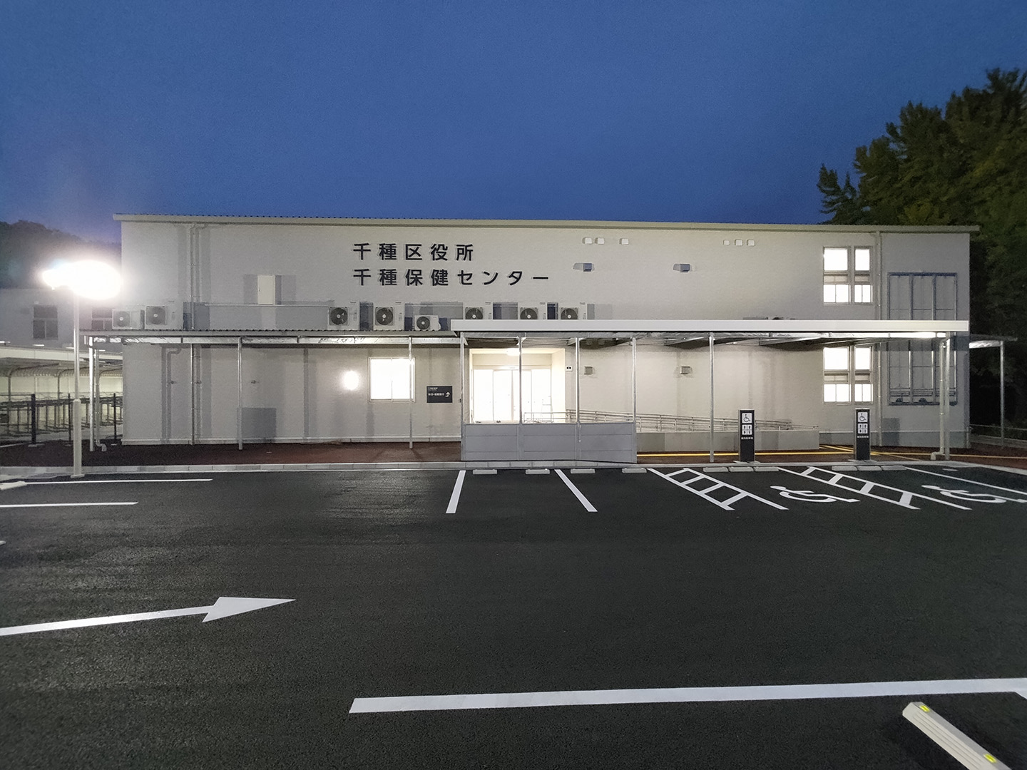 TDシリーズ 「TDシリーズ」 オリエントハウスプレハブシリーズのロングセラーシリーズです。設計の自由度が高くデザイン性の高い建築が可能で、準耐火建築物にも対応しています。シリーズ詳細はこちら>more で設計・施工した、本庁舎の建て替えに伴う仮設庁舎です。「仮設」という印象を与えないよう、外壁には耐久性のある窯業系サイディングを採用し、しっかりとした建物の佇まいを実現。内装にはクロス仕上げを採用し、快適で清潔感のある空間を提供しています。バリアフリーにも配慮し、庁舎内には段差を設けず、誰もが安心して利用できる設計としました。庁舎としての機能を十分に確保しつつ、非常時に備えた防災設備も充実しています。72時間稼働可能な非常用発電機や燃料庫を備えているほか、防災無線を設置することで緊急時の通信手段を確保。一時的な庁舎でありながらも、安全性・機能性・快適性にこだわった設計により、本庁舎と同等の環境を提供しています。
