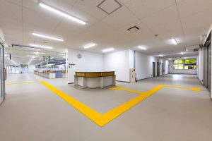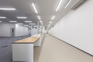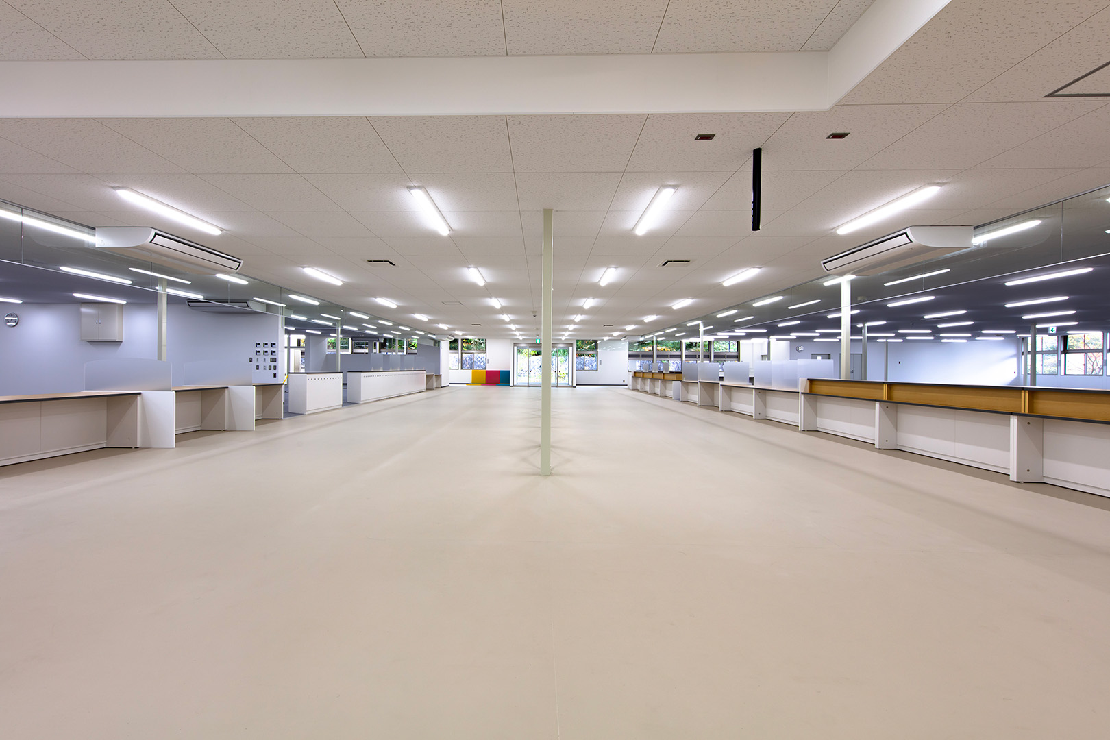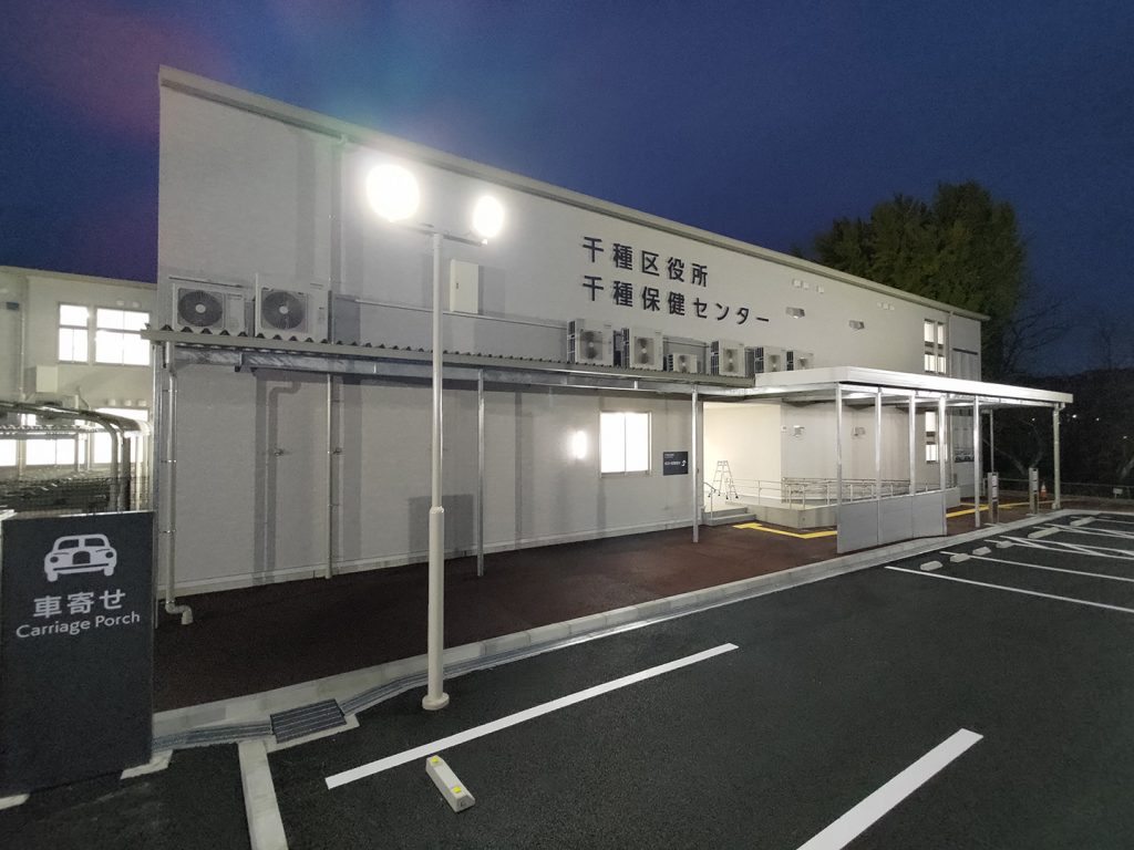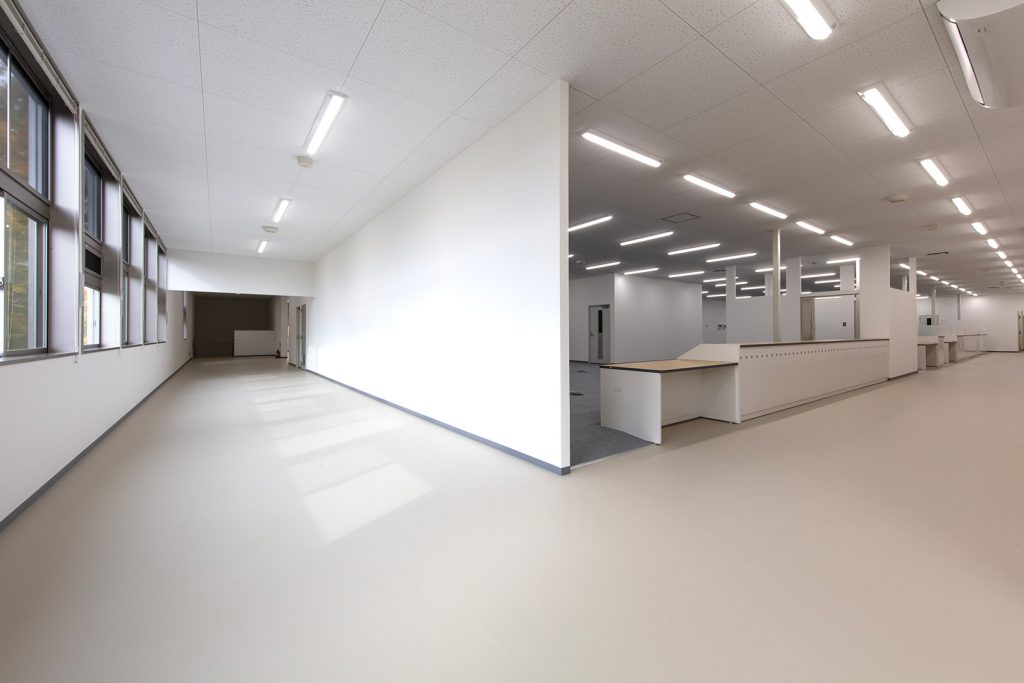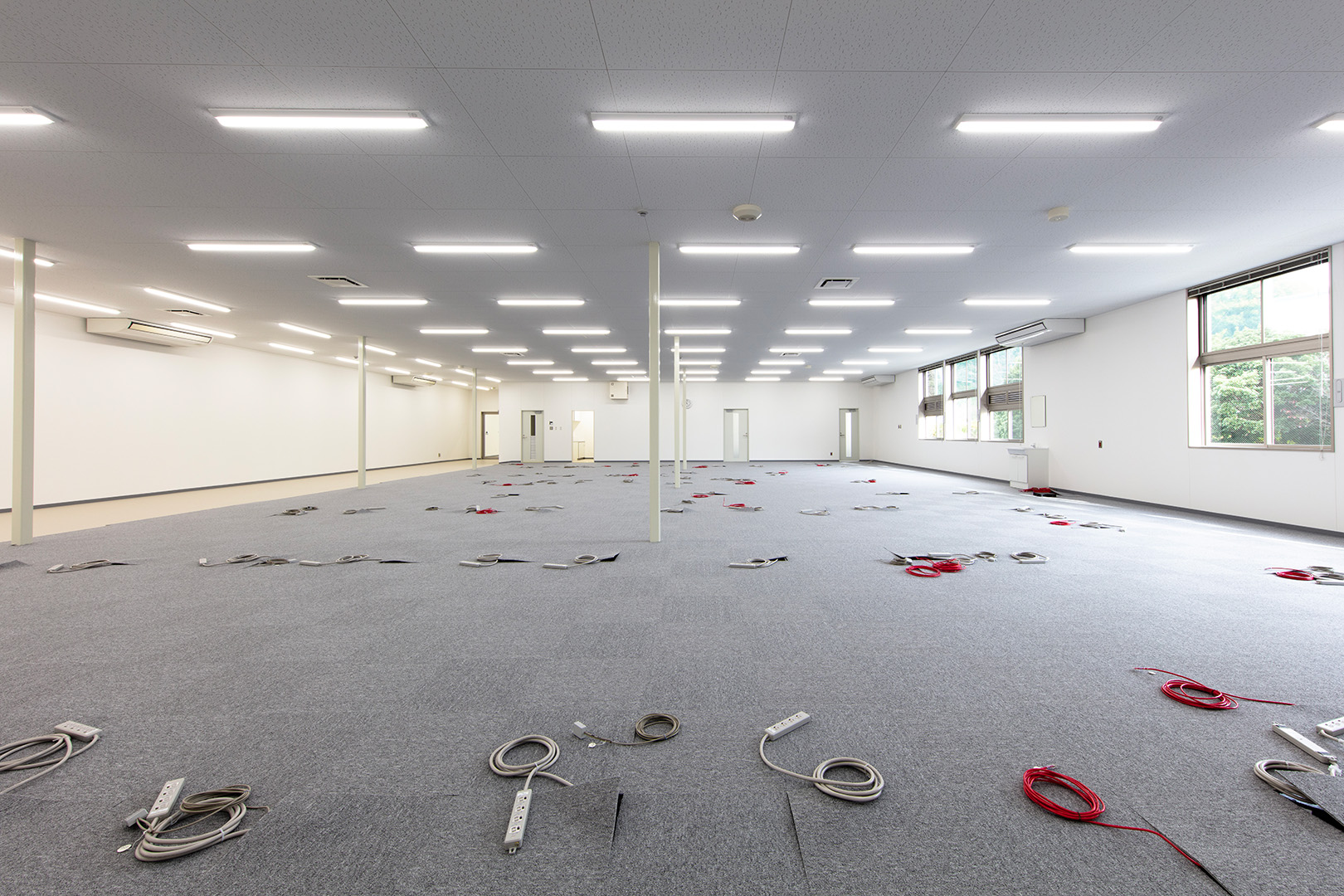 TDシリーズ 「TDシリーズ」 オリエントハウスプレハブシリーズのロングセラーシリーズです。設計の自由度が高くデザイン性の高い建築が可能で、準耐火建築物にも対応しています。シリーズ詳細はこちら>more で設計・施工した、本庁舎の建て替えに伴う仮設庁舎です。「仮設」という印象を与えないよう、外壁には耐久性のある窯業系サイディングを採用し、しっかりとした建物の佇まいを実現。内装にはクロス仕上げを採用し、快適で清潔感のある空間を提供しています。バリアフリーにも配慮し、庁舎内には段差を設けず、誰もが安心して利用できる設計としました。庁舎としての機能を十分に確保しつつ、非常時に備えた防災設備も充実しています。72時間稼働可能な非常用発電機や燃料庫を備えているほか、防災無線を設置することで緊急時の通信手段を確保。一時的な庁舎でありながらも、安全性・機能性・快適性にこだわった設計により、本庁舎と同等の環境を提供しています。