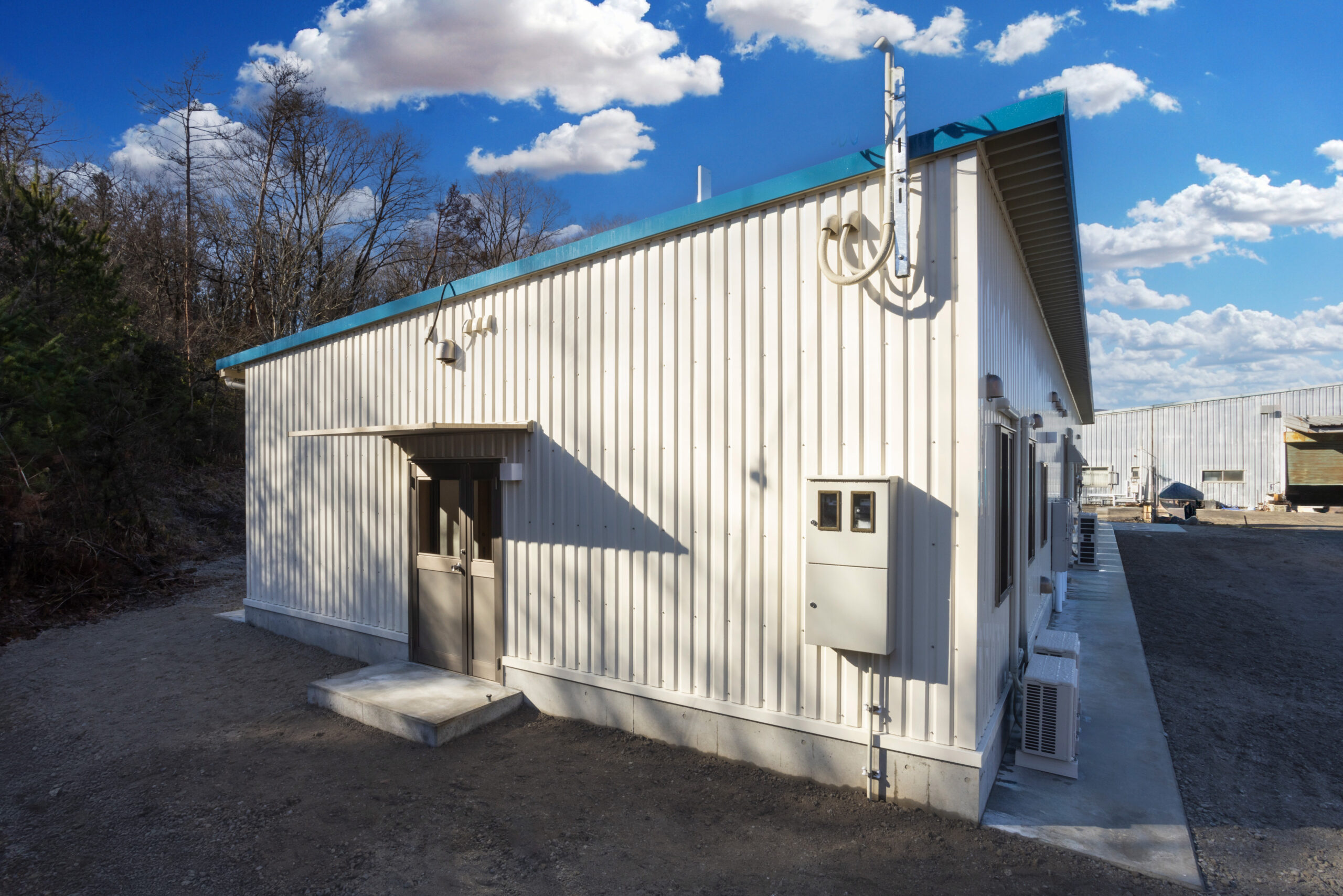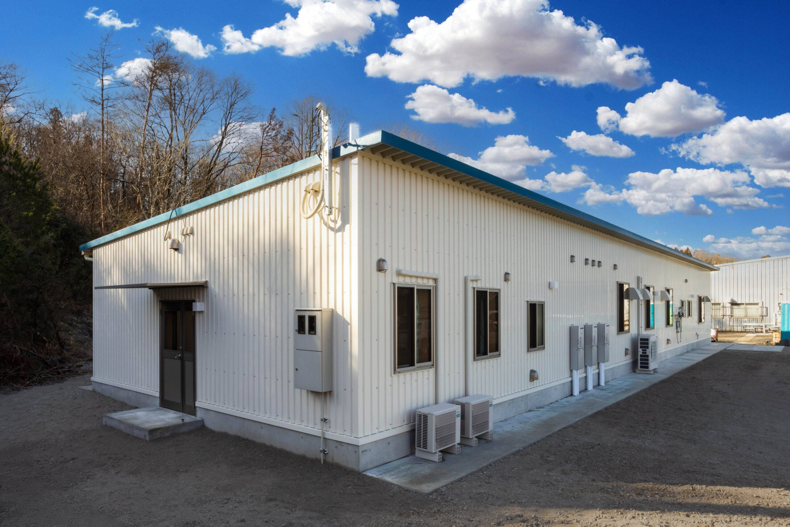 で設計・施工した、外国人技能実習生のための寄宿舎です。計画されている居室数や間取りに合わせ、カスタムモジュールを採用し、限られた面積の中でも無理のない居室計画としています。各居室には上吊り収納棚を部屋の両サイドに設け、パイプハンガーを取り付けることで、収納スペースを確保しつつ生活スペースを広く使えるよう配慮しました。内装は家具との調和を意識し、床には木目調の塩ビシートを採用しています。間取りについては、娯楽室を兼ねる食堂を建物の中心に配置することで、各居室から自然に集まりやすいスムーズな動線を実現しました。キッチンはステンレス製の厨房設備と不燃化粧板の壁を組み合わせ、油を使った調理でも汚れが落としやすい、清掃性に優れた仕様としています。