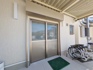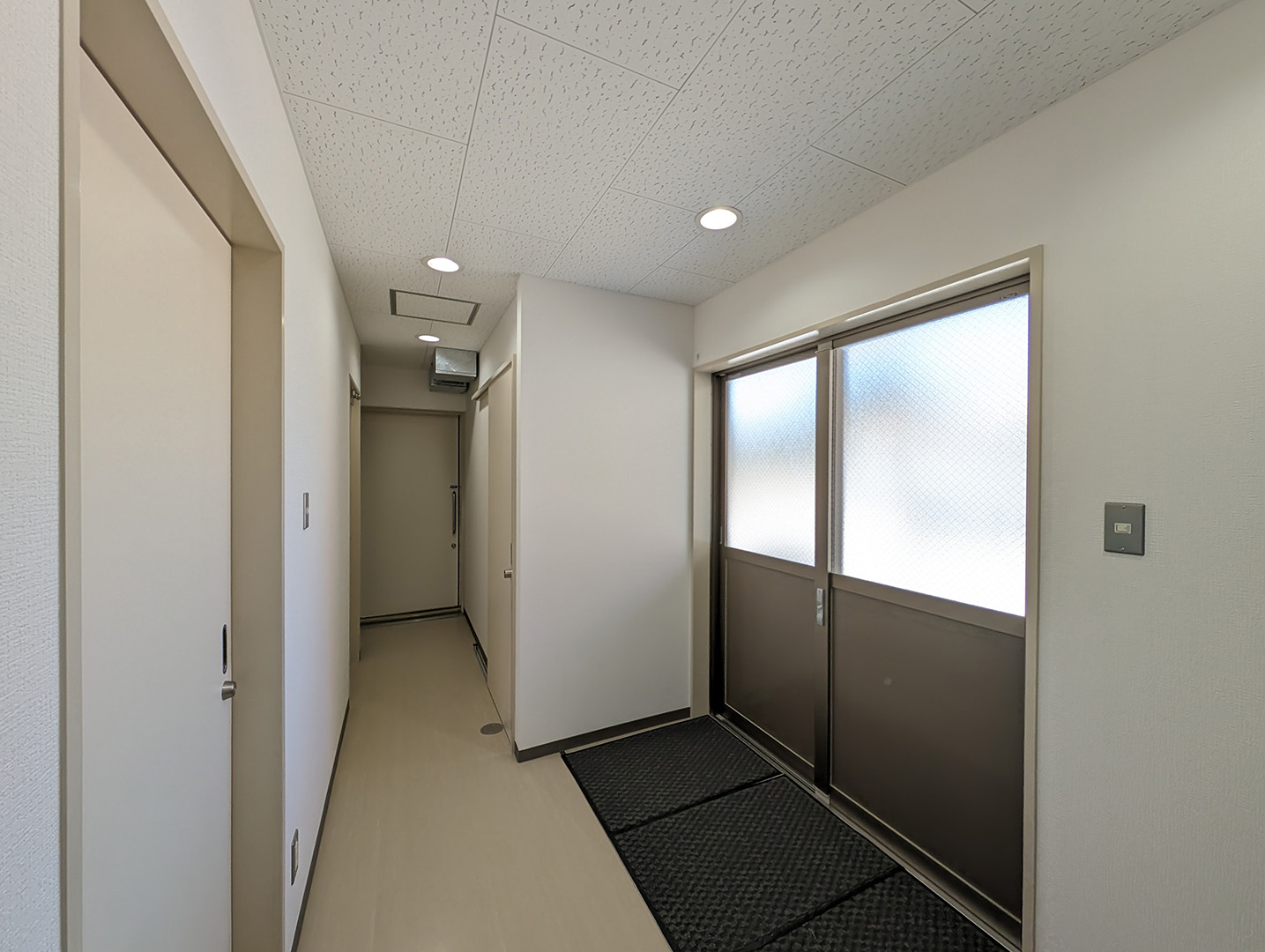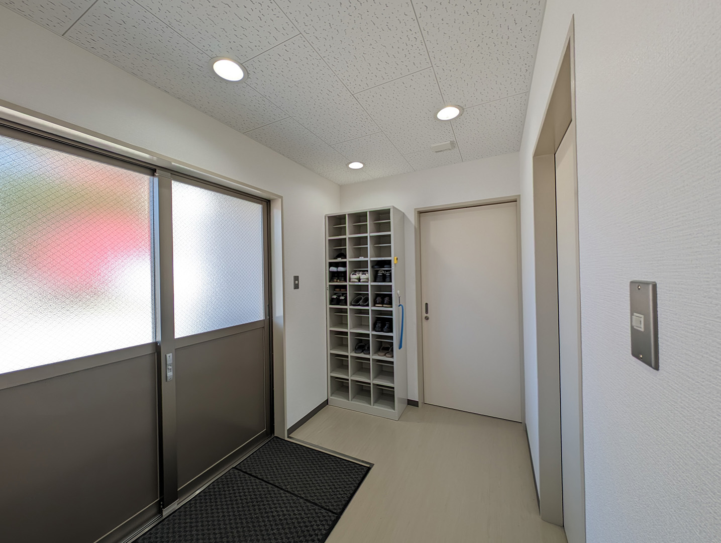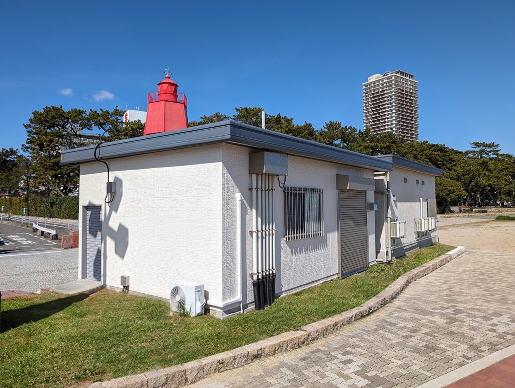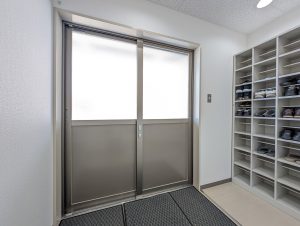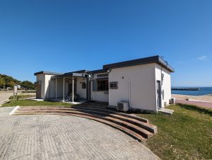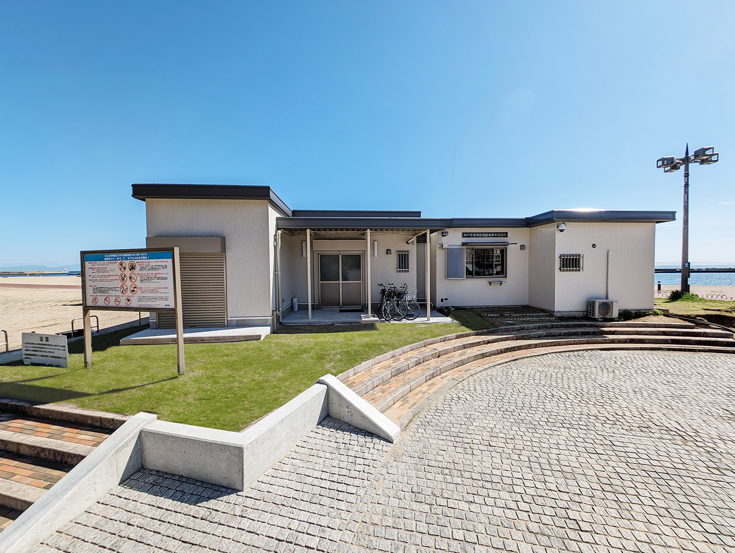 TDシリーズ 「TDシリーズ」 オリエントハウスプレハブシリーズのロングセラーシリーズです。設計の自由度が高くデザイン性の高い建築が可能で、準耐火建築物にも対応しています。シリーズ詳細はこちら>more で施工した海岸警備の管理事務所です。正面から向かって右側が既存の事務所で、左側が今回新たに増築した建物となります。既設事務所では手狭になったことから増築計画が上がりましたが、構造および施工上の理由から既存建物を直接拡張することが難しかったため、別棟として新たに建設しました。既存棟との接続にはエキスパンションジョイントを用い、通路でつなぐことで外部に出ることなく行き来できるレイアウトとなっております。新築部分には更衣室や休憩室、倉庫を新設しています。倉庫には高さ1.9m x 幅1.6mの軽量シャッターを設置。外壁には耐久性と耐塩害性を考慮し、窯業系サイディングを採用するとともに、鉄骨柱が外部に露出しない仕様にしました。