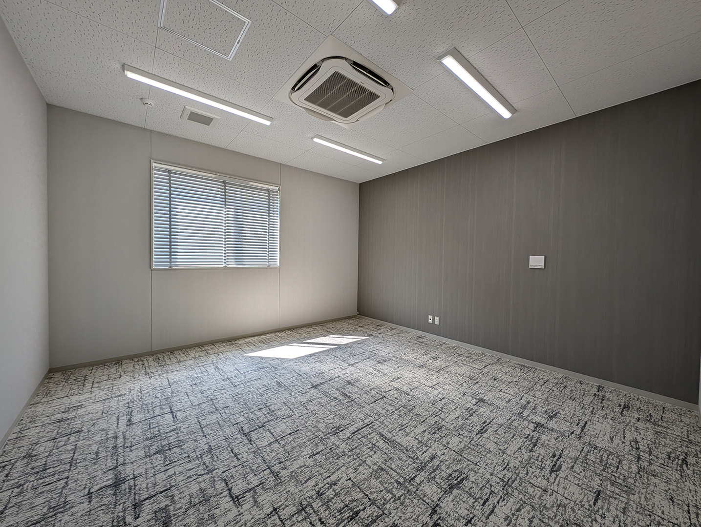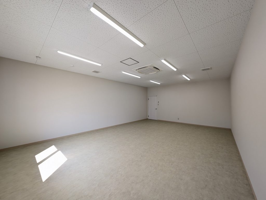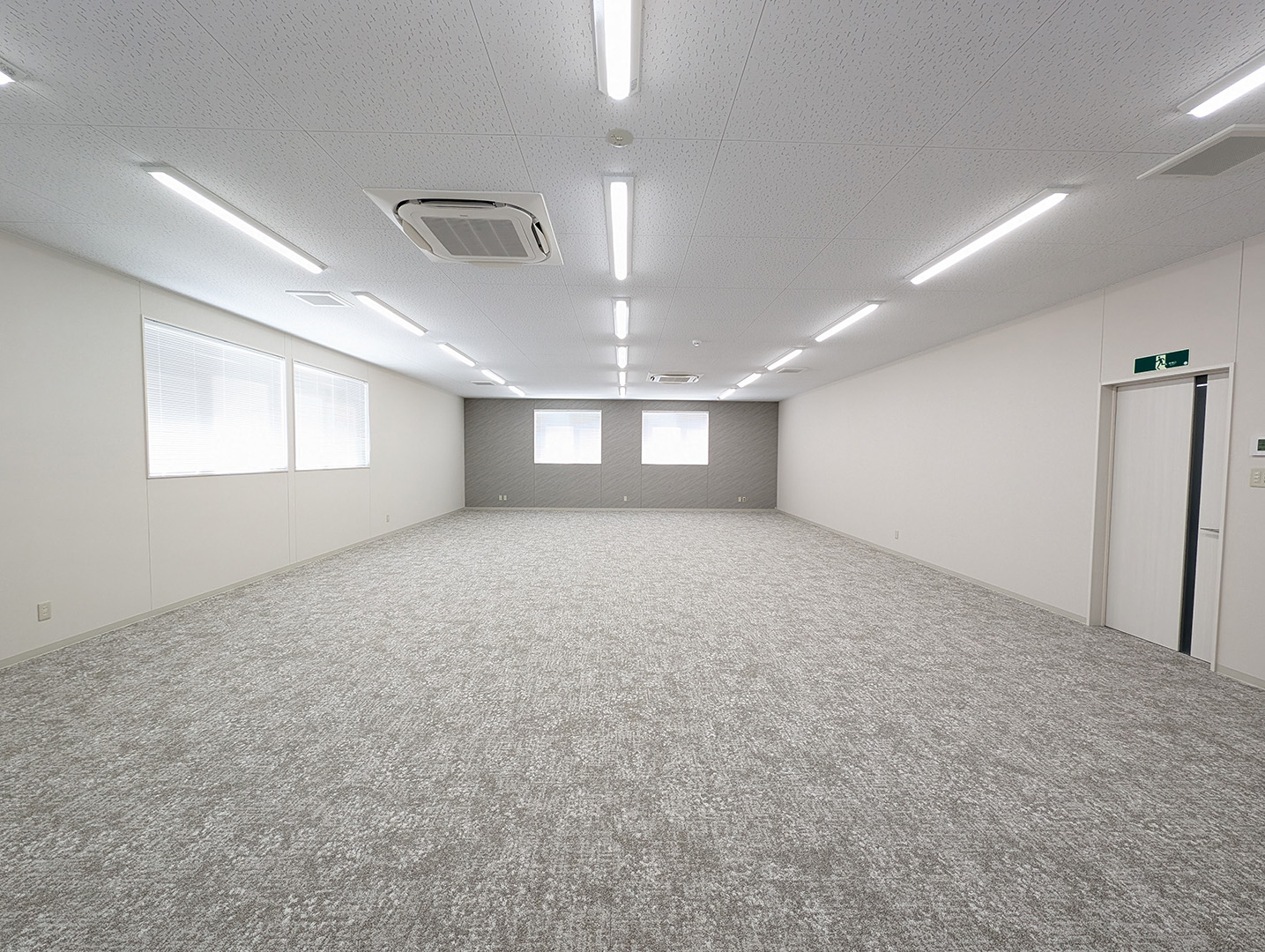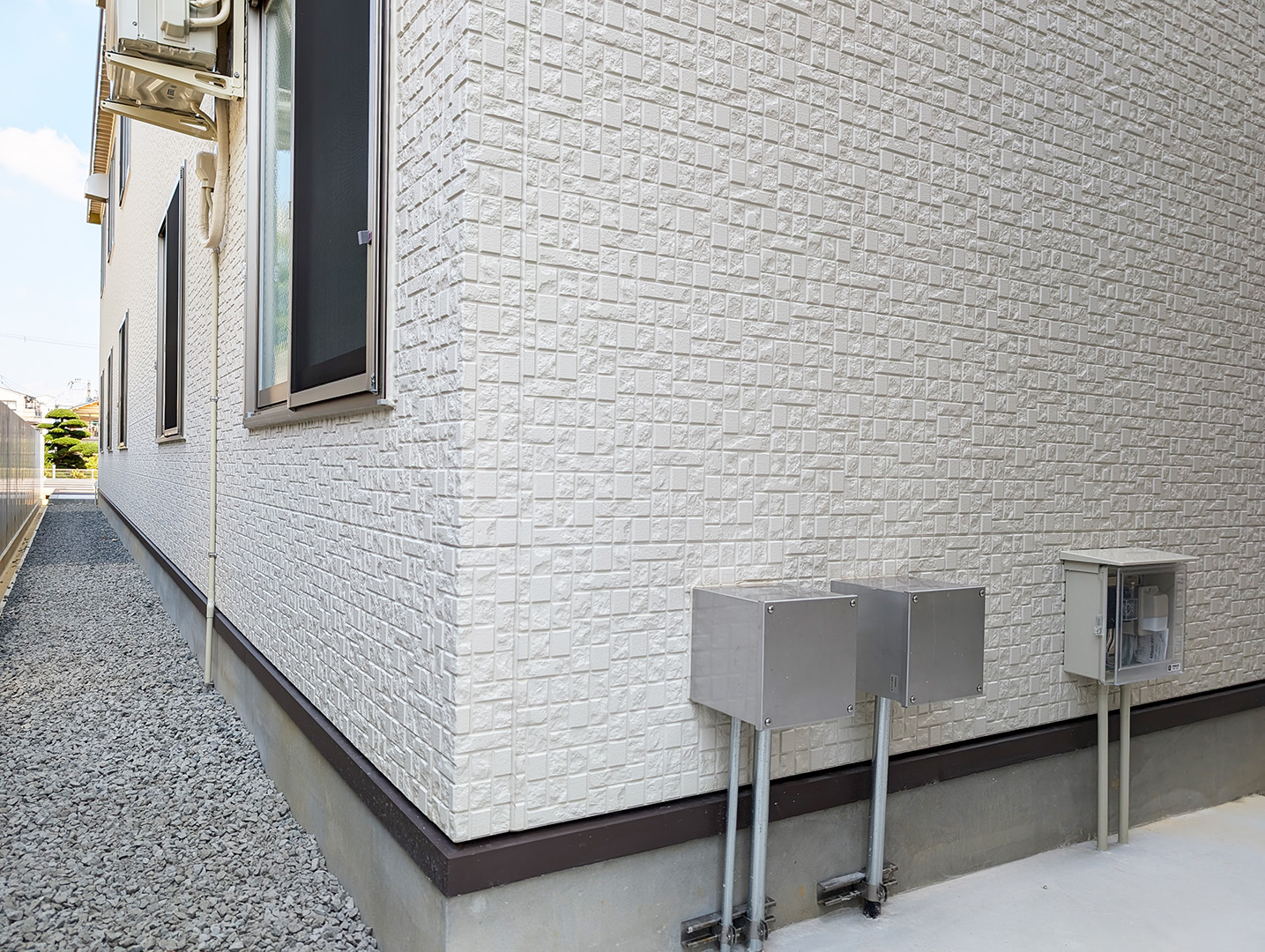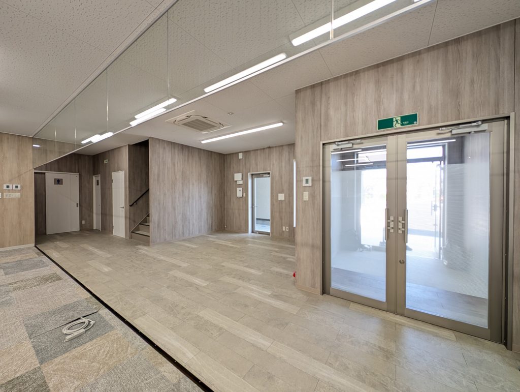 TDシリーズ 「TDシリーズ」 オリエントハウスプレハブシリーズのロングセラーシリーズです。設計の自由度が高くデザイン性の高い建築が可能で、準耐火建築物にも対応しています。シリーズ詳細はこちら>more で施工した事務所棟と倉庫棟です。設計段階では、施主様のご意向を踏まえて、建物の配置や出入り口の位置を慎重に決定。建物の構造には 軽量鉄骨造 「軽量鉄骨造」 主に板厚6mm未満の軽量鋼材を柱・梁などの主要骨組みに使用する鉄骨構造。部材が軽く、工場でのプレハブ化・ユニット化がしやすいため、短工期で高精度な施工が可能。more を採用しながらも、倉庫棟の中2階部分には 重量鉄骨造 「重量鉄骨造」 主にH形鋼などの厚みのある鋼材(板厚6mm以上)を柱・梁などの主要骨組みに使用する鉄骨構造。柱や梁が太く剛性が高いため、大スパンや高層建築、大型倉庫・工場などに適している。軽量鉄骨...more を採用することで、重さのある荷物にも対応した耐久性を確保しました。事務所棟の正面には 風除室 「風除室」 風や外気が直接居室に流入しないよう、建物の玄関前などに設けられる小部屋です。more を設置し、暴風対策や防犯性にも配慮。また、倉庫棟には軽量電動シャッター(高さ3.0m x 幅2.5m)を3か所に設置し、製品の搬入出をスムーズに行える設計としました。シャッター前面には、動線の確保に優れている柱の無い大型の吊り庇(幅16.8 m x 奥行き3.0 m)を採用し、雨の日の作業にも配慮。倉庫棟の 梁下 「梁下」 梁(はり)の下端から床仕上げ面までの高さを示す寸法。意匠的な天井仕上げの高さ(天井高)とは異なり、構造体としての制限寸法を表す。 梁下:梁の下端まで 天井高:内装仕上げ後の天井面ま...more 有効高は5.3mで、広い空間を確保しています。倉庫1階の床面積は177㎡、中2階の床面積55㎡とし、中2階の高さは既存倉庫に合わせ約2.5mに調整しました。外壁には16mm厚の窯業系サイディングを採用し、一部を張り分けることでアクセントをつけたデザインに仕上げています。