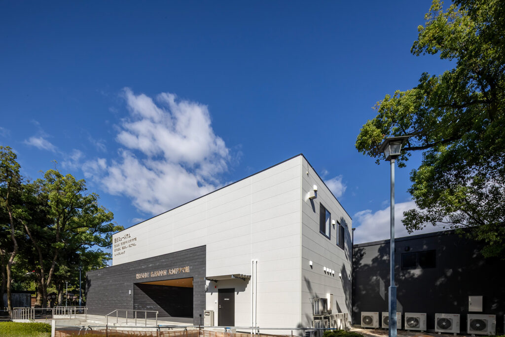 名古屋市・中村公園内に計画された「豊臣兄弟! 名古屋中村 大河ドラマ館」をはじめとする複合施設「豊臣ミュージアム」の建物です。本案件はプロポーザル方式(提案内容の審査により受注者を決定)によるもので、名古屋市へのプレゼンテーションに向けて計画地調査と図面等の提案資料を作成し、その審査を経て正式な実施計画が始まりました。計画地は公園内にあり、建築できる範囲が限られていたため、「展示棟」「事務所棟」「物販棟」の3棟に分け、事務所棟を2階建てにすることで必要な諸室を確保。周辺には障害物や幅員確保が必要な通路がありましたが、敷地詳細の測量は受注後でなければ実施できなかったため、各棟を構造上独立させた構成とすることで、受注後の測量結果や要求事項に応じて建物寸法を柔軟に調整できる計画としました。
