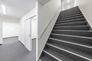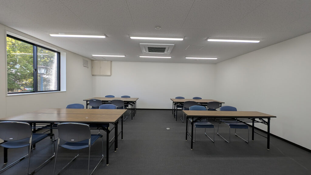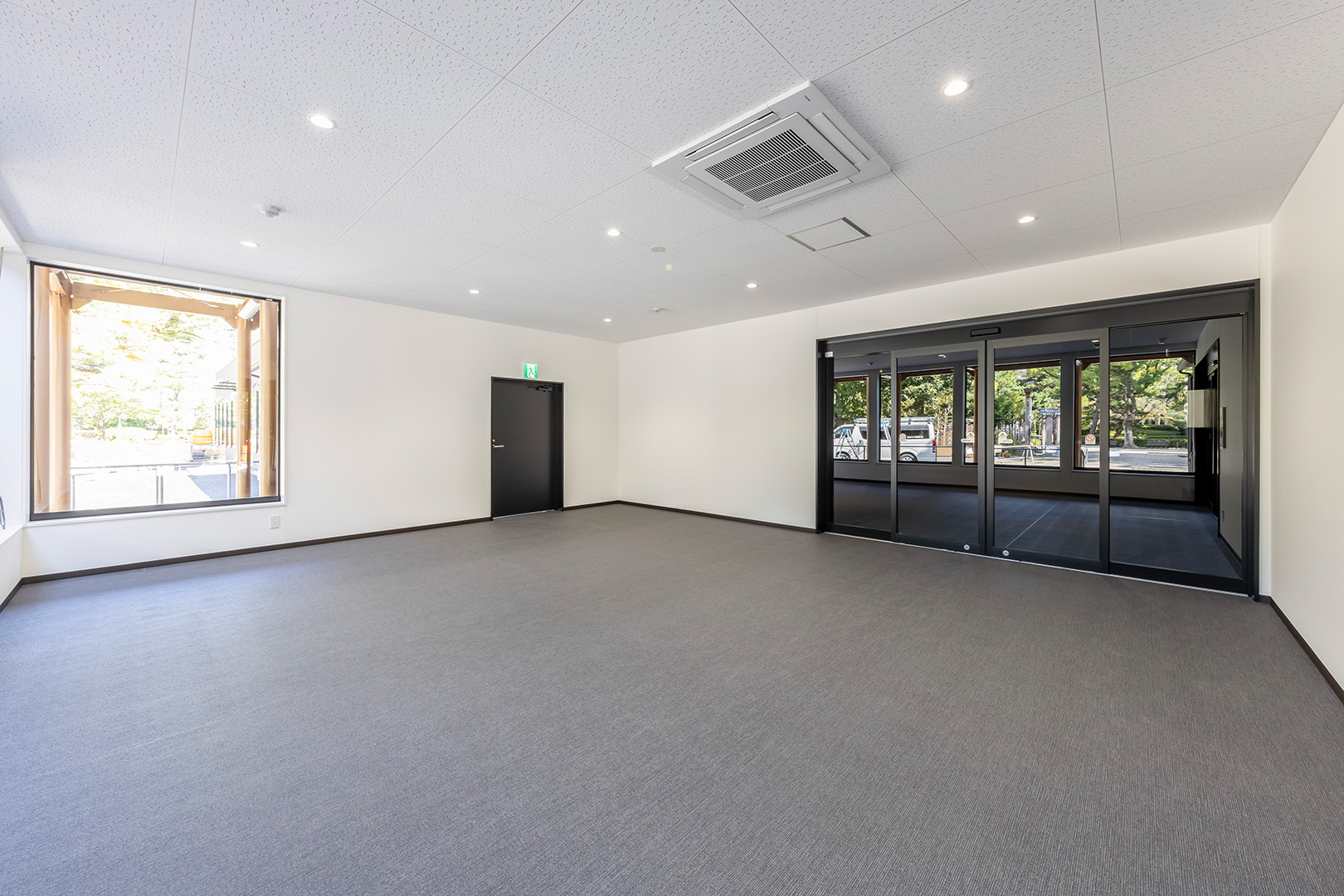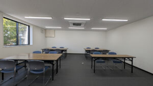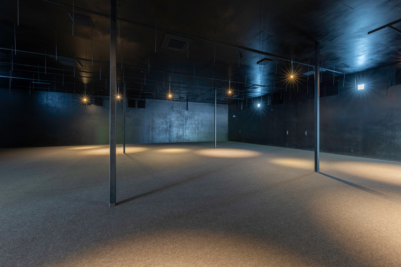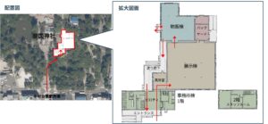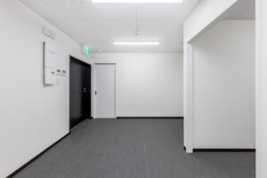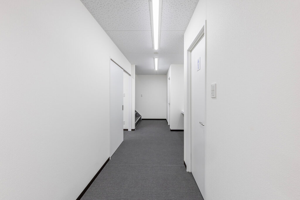 約450㎡のメイン展示室ではブレースを設けず、内部は4本の中柱のみで成立する架構を採用することで、展示物を自由に配置できる大空間を実現しました。各棟を構造的に独立させることで用途に応じた計画が可能となり、天井高については展示室4.5m、物販棟2.7m、事務所棟2.4mとそれぞれ用途に適した高さに設定しています。