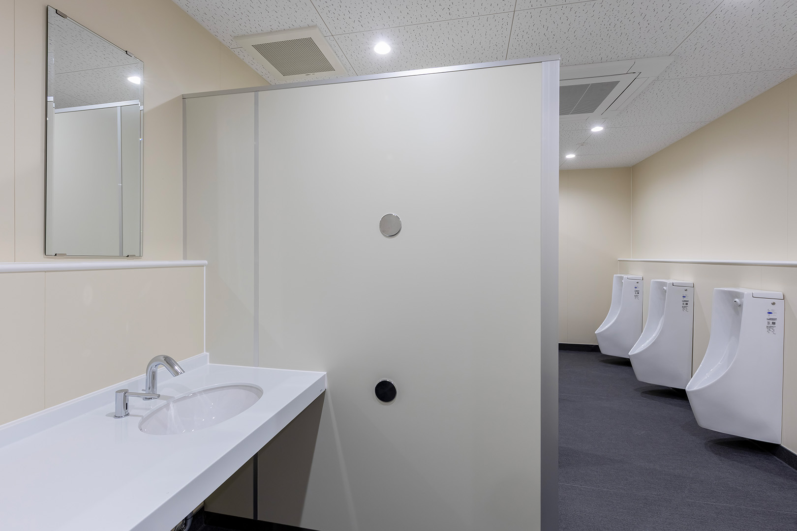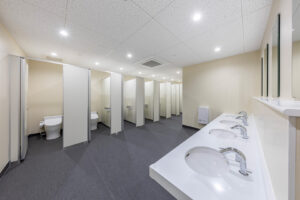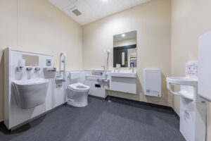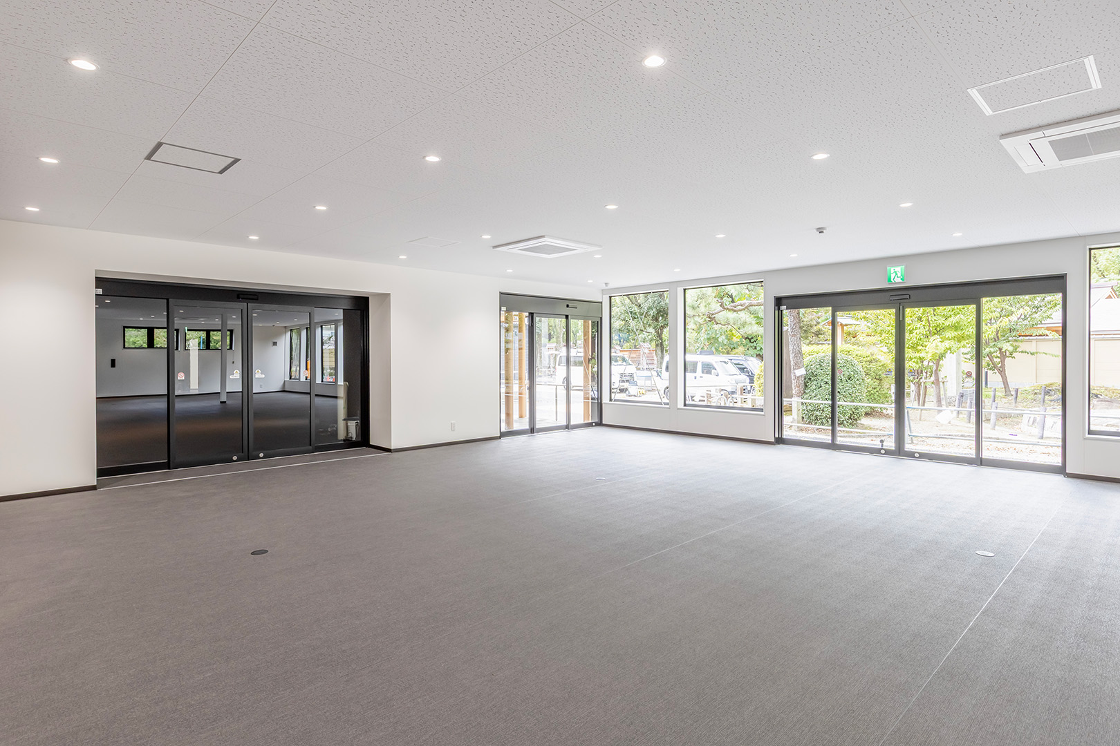 来館者が快適に施設を利用できるよう、ピロティから 風除室 「風除室」 風や外気が直接居室に流入しないよう、建物の玄関前などに設けられる小部屋です。more 、展示棟、物販棟へと自動ドアで連続的につなぎ、順路を明確化。さらに、物販棟から渡り廊下を介してピロティへ戻れる回遊動線とすることで、混雑を抑制し、スムーズに周遊できるよう配慮しています。類似施設の調査を踏まえ、公園内の人の流れや駅からのアクセス、トイレ位置・必要数、曜日ごとの来園者の変動まで多角的に分析し、その結果を配置計画およびゾーニング計画に反映しました。