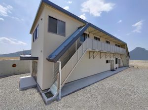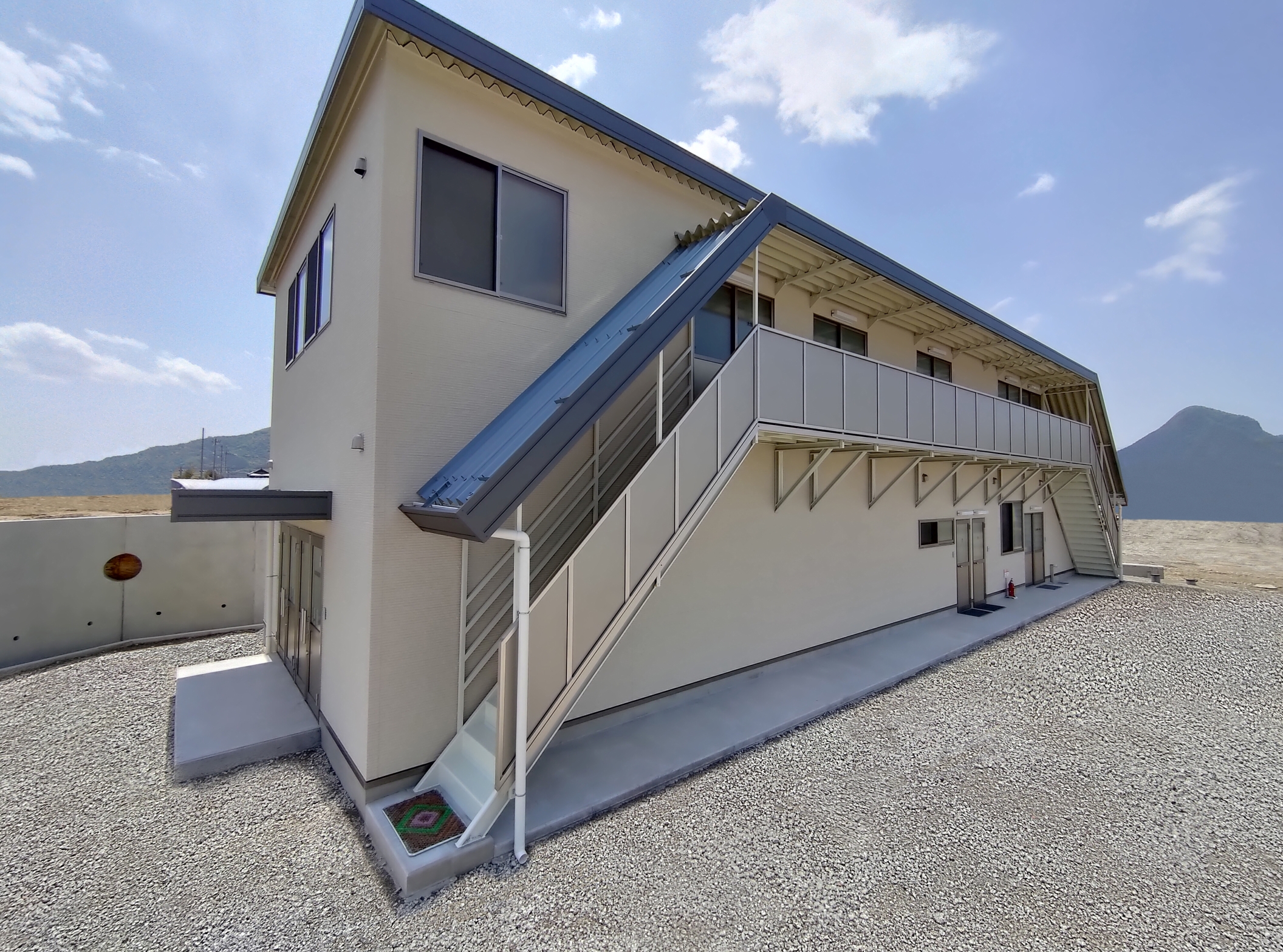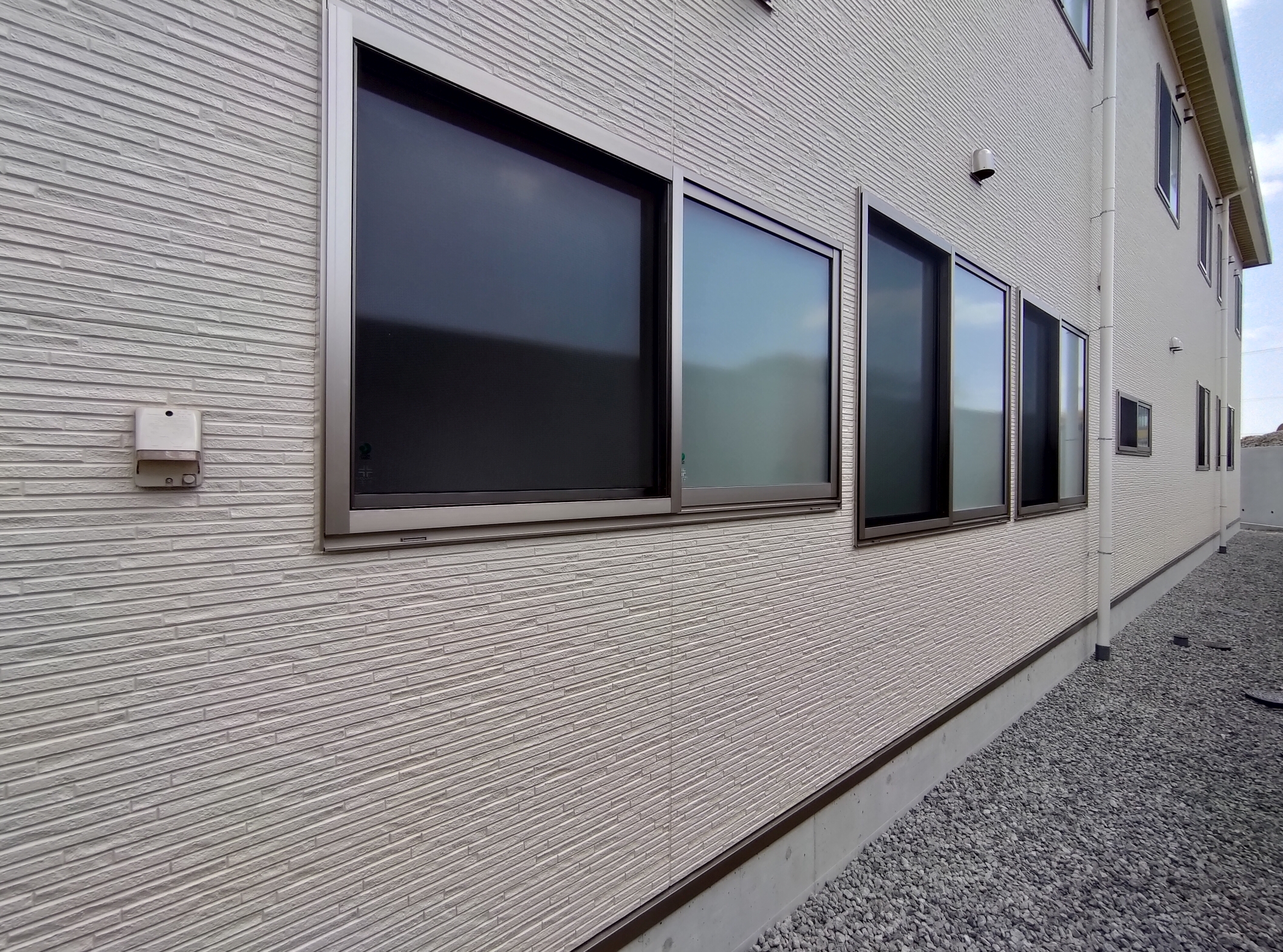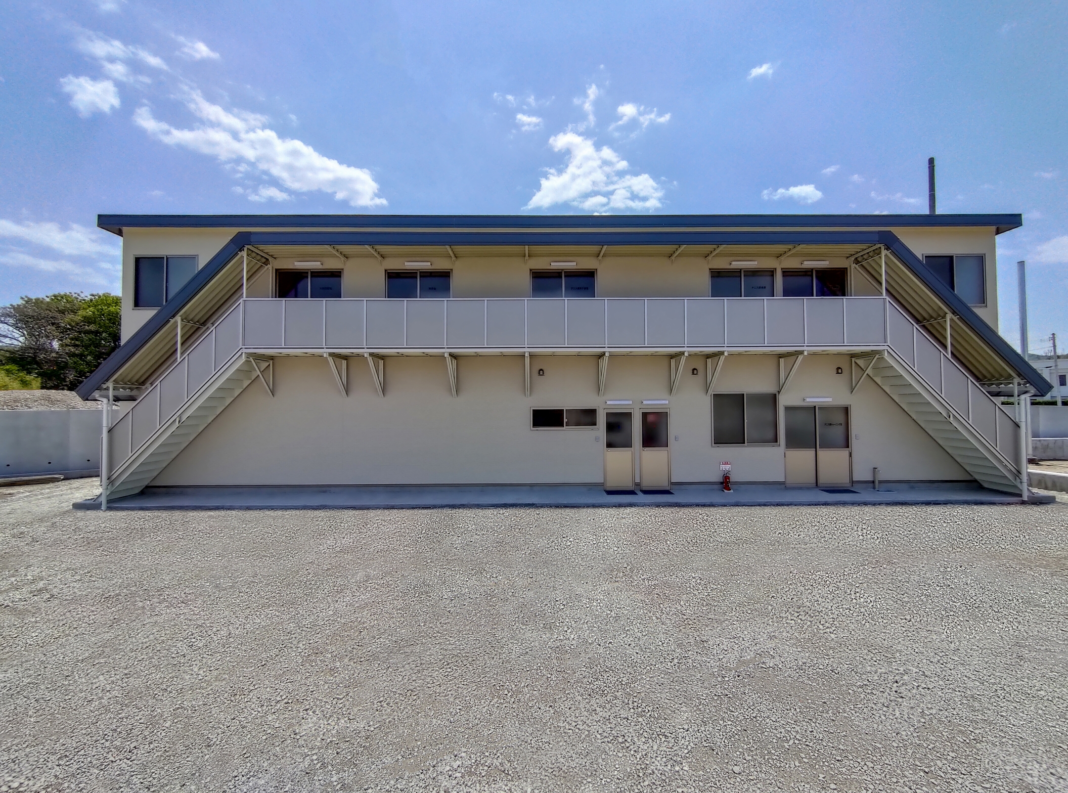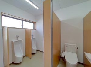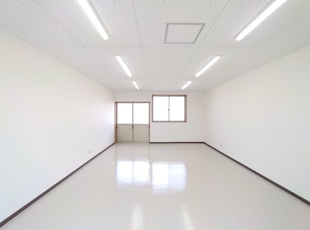 高等学校に併設された生徒のためのクラブハウス。様々な部が入居していますが、1階には太鼓部の練習場を配置。大きな太鼓は、高さが1.6m・バチの長さも60cmから90cm近くにもなり、そのため初期の設計であった天井高を2.5mから2.9mに変更。窓や出入り口には強化ペアガラスを使用し、音漏れと断熱性に最大限配慮。2Fには動線とアクセスの容易さを考慮し両サイドに階段を配置。日々の練習で、世界に羽ばたいてください。