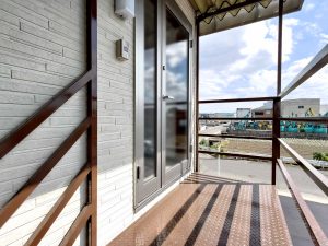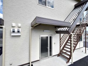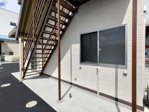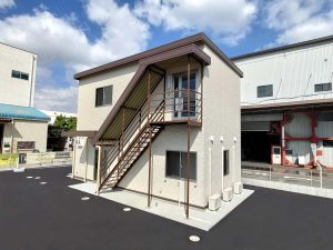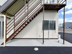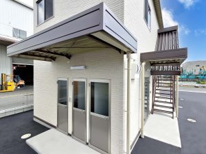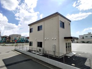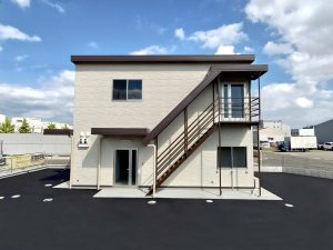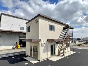 WDシリーズ 「WDシリーズ」 オリエントハウスのプレハブシリーズで、TDシリーズをベースに木製の外壁下地を使用したモデルです。シリーズ詳細はこちら>more にて設計施工した、1Fが休憩室兼仮眠室、2Fが事務所の事例です。休憩・仮眠の妨げにならないように、2F事務所へは直通の外階段を採用しました。1Fにはトイレを2ヶ所設置し、室内用と土足でも使用できる室外用で分けたい、との御客様のご要望を取り入れた設計になっています。また住宅仕様の洗面台・シャワーユニットも完備しており、高い居住性を実現しています。